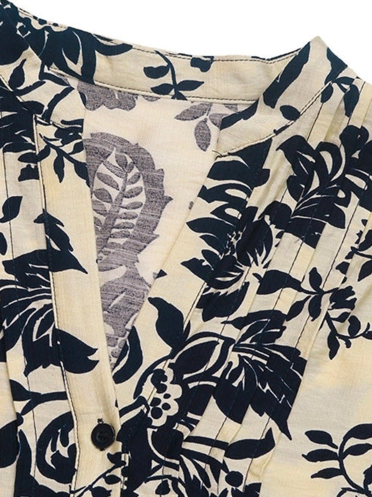 Step into timeless elegance with the Noir Vintage Blouse, a refined piece that effortlessly combines sophistication and versatility. Featuring a delicate beige and black print and a chic stand-up collar, this blouse exudes vintage charm with a modern twist.