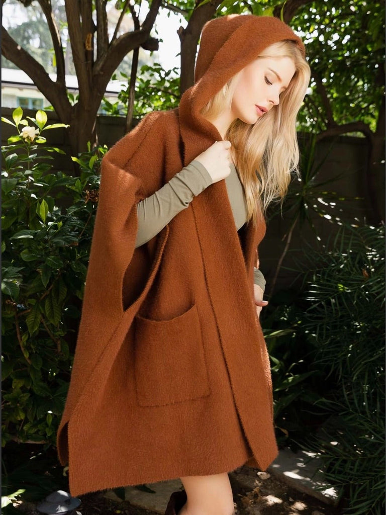 Embrace boho vibes with our Boho Breeze Hooded Ruana, available in soft Ecru or earthy Brown. This plush, open-front layer combines cozy comfort with effortless style, featuring a roomy hood, arm holes, and an oversized fit that flatters all shapes and sizes. Crafted from a luxe blend of 60% polyester and 40% nylon, this ruana feels like a warm embrace, perfect for layering over your favorite jeans or leggings on cooler evenings. Its versatile design makes it ideal for travel, relaxed weekends, or adding a cozy-chic edge to any outfit.