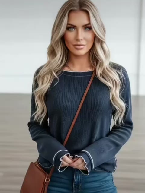 Soft, cozy, and effortlessly flattering — the Morning Light Waffle Top is your new everyday essential with a little extra charm. Crafted from a textured waffle fabric with exposed seam detailing, this pullover brings just the right amount of visual interest while still feeling relaxed and wearable.