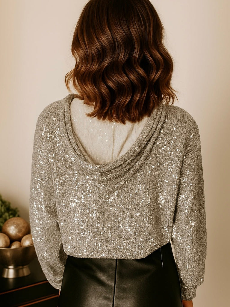 sequin hoodie, sparkly top women, holiday party top, casual glam hoodie