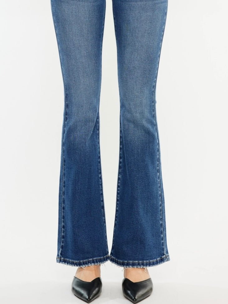 With the Melina Mid Rise Flare Jeans, you'll rock a chic dark wash that oozes sophistication. The crisp wash, zipper fly, and contrasting waistband details all up the elegance factor of these posh jeans, while the stretch material guarantees a comfy and flattering fit.