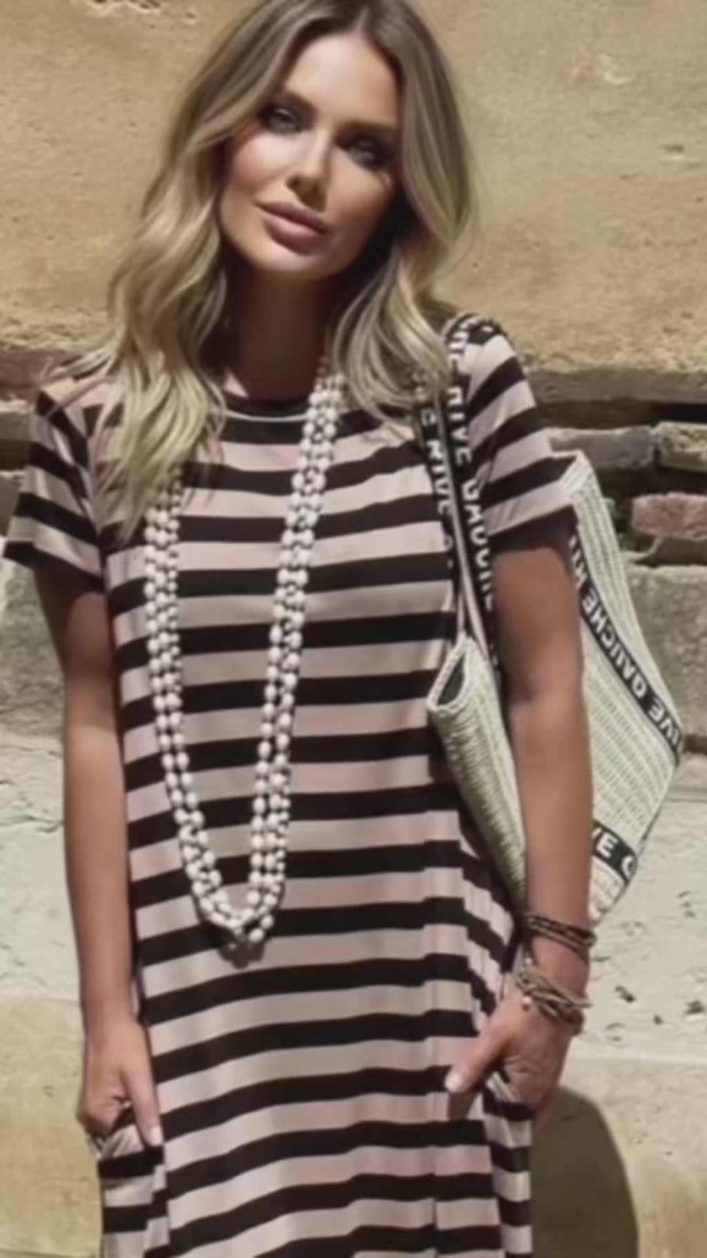 Effortless, chic, and oh-so-comfortable—the Cafe Striped Maxi Dress is the ultimate go-to for laid-back elegance. Featuring a classic striped pattern in neutral tones, this dress is designed with a flattering maxi length, a round neckline, and short sleeves for an easy, breezy feel. And let’s talk about those pockets—because fashion should always be functional!