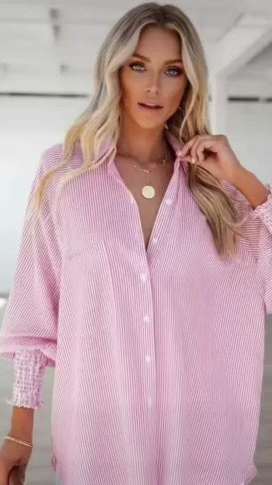 Some pieces quietly do all the work for you — and this is one of them. The Coastline Stripe Button-Up is an easy, throw-on staple that instantly pulls a look together. With its relaxed fit and classic stripe pattern, it feels effortless, flattering, and right for everything from everyday errands to laid-back coastal days.