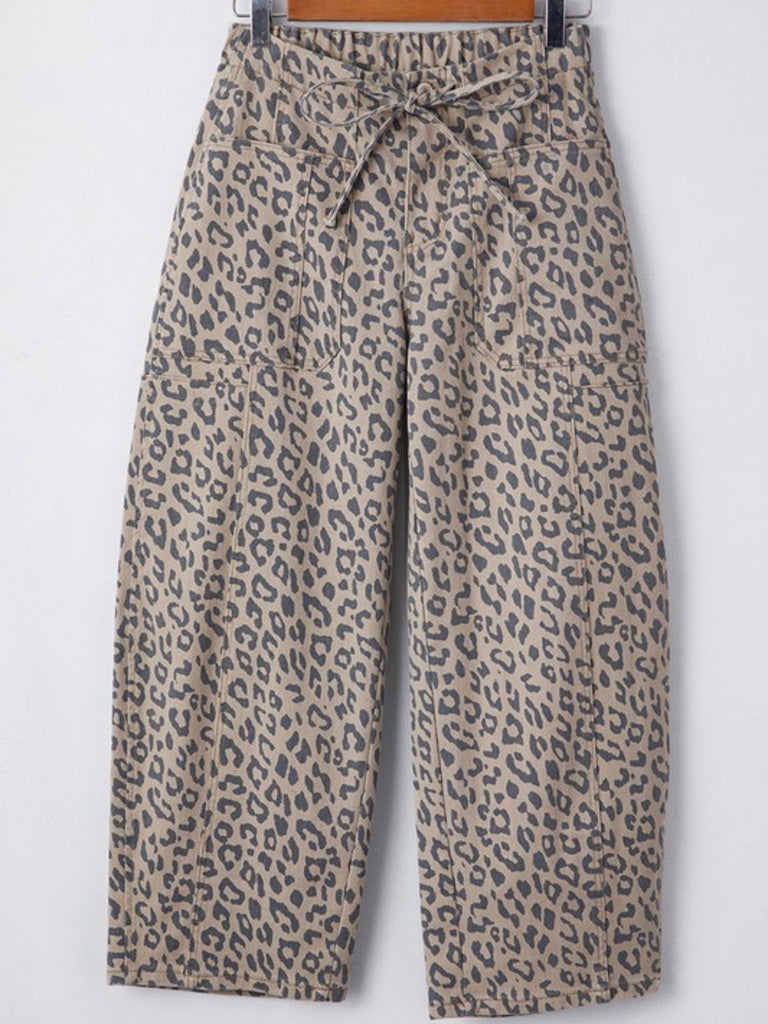 With a wide leg and soft fabric, these leopard-print trousers are bold but wearable. A tie belt at the waist gives it a flattering shape. Wear with a basic tank or dress it up with a blazer.