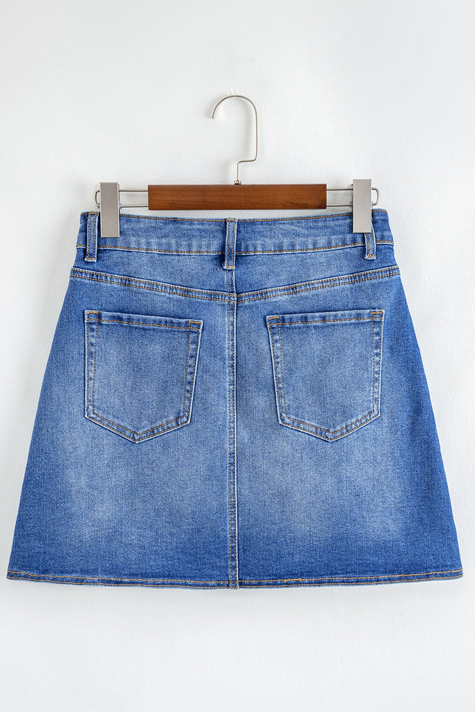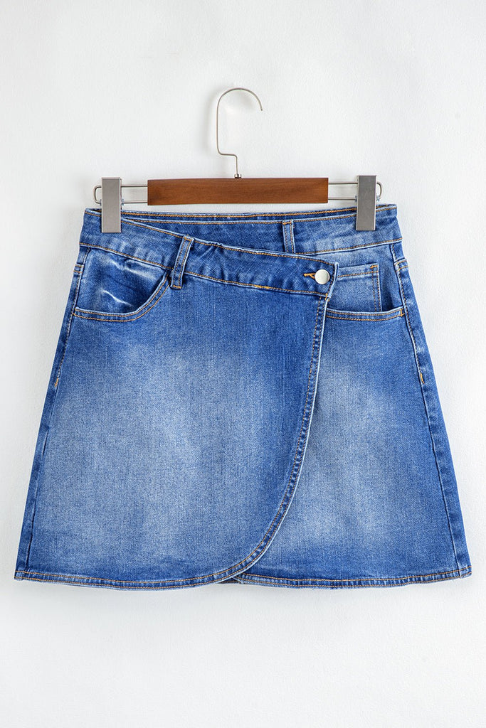 Step up your spring wardrobe with the Wrap Me Up Denim Mini, a flirty and flattering denim skirt made for everything from weekend markets to casual date nights. This unique wrap-front design adds a curve-hugging silhouette to your look with vintage-wash denim that pairs perfectly with your favorite blouses or tanks.