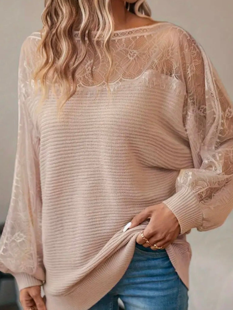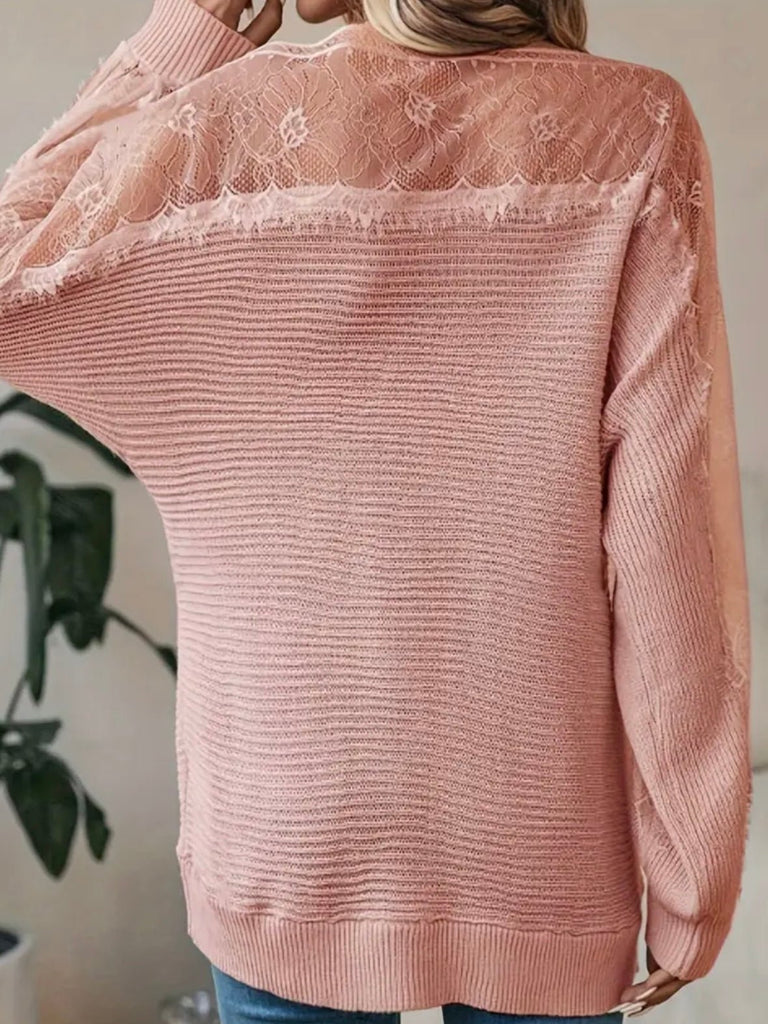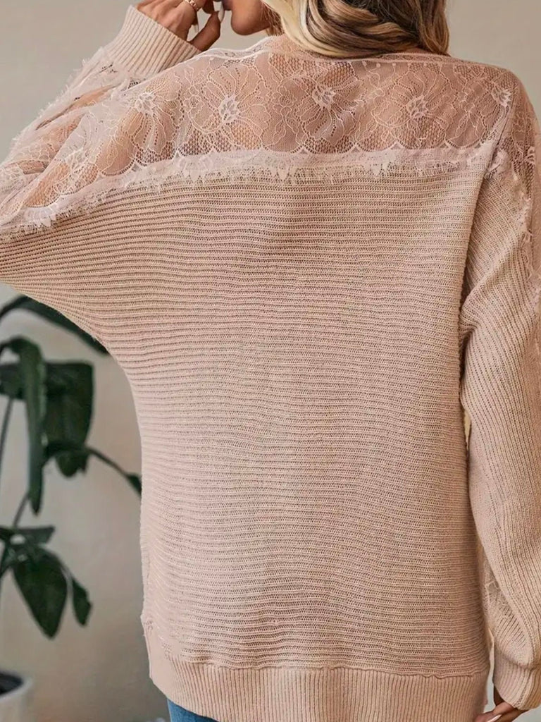 Effortless elegance meets cozy comfort with the Lace Whisper Pullover. This charming sweater blends a soft knit design with delicate lace accents, creating a perfect balance of sophistication and everyday wearability. The intricate lace detail graces the neckline and sleeves, adding a romantic touch that elevates your casual looks.
