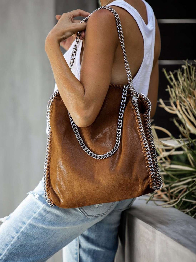 Elevate your boho-chic style with the Chain Link Boho Bag—it's the ultimate must-have accessory! This eye-catching bag features a lightly foil-finished design and versatile carry options, making it the perfect blend of fashion and function. The trendy chain strap adds an edgy vibe, while the spacious interior, lined with thick chevron fabric, ensures all your essentials stay organized. Whether you're heading to a festival or a casual outing, this boho-inspired bag is your go-to for effortless style.