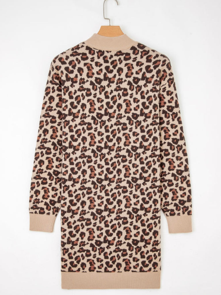 Make every day fierce and fabulous in this bold leopard print sweater dress. Cozy and on-trend, it’s designed for comfort without sacrificing chic style.
