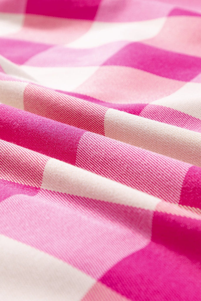 • Color: Soft pink and neutral cream plaid pattern for a classic, feminine vibe