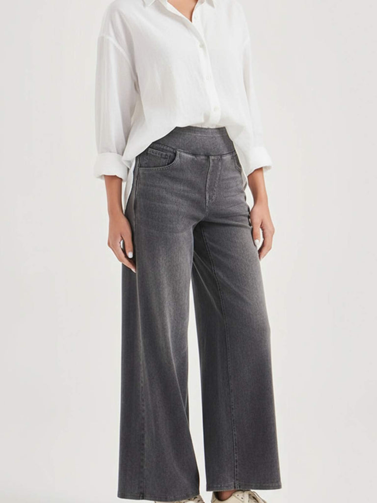 • Trendy wide-leg cut that flatters every body type