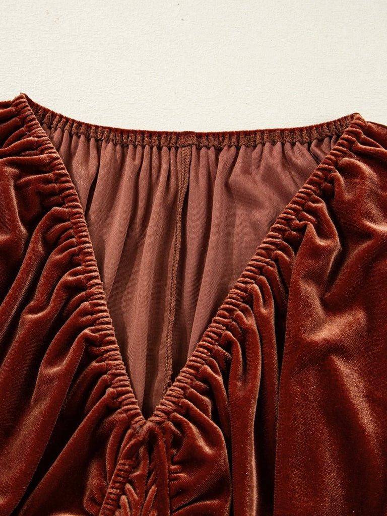 Step into velvet season with the Harvest Glow Dress, a rich rust mini that channels golden hour in dress form. Crafted from luxe velvet, it features soft bishop sleeves and gathered waist detailing for a flattering, romantic silhouette. This is your go-to for autumn soirées, date nights, and cozy celebrations.