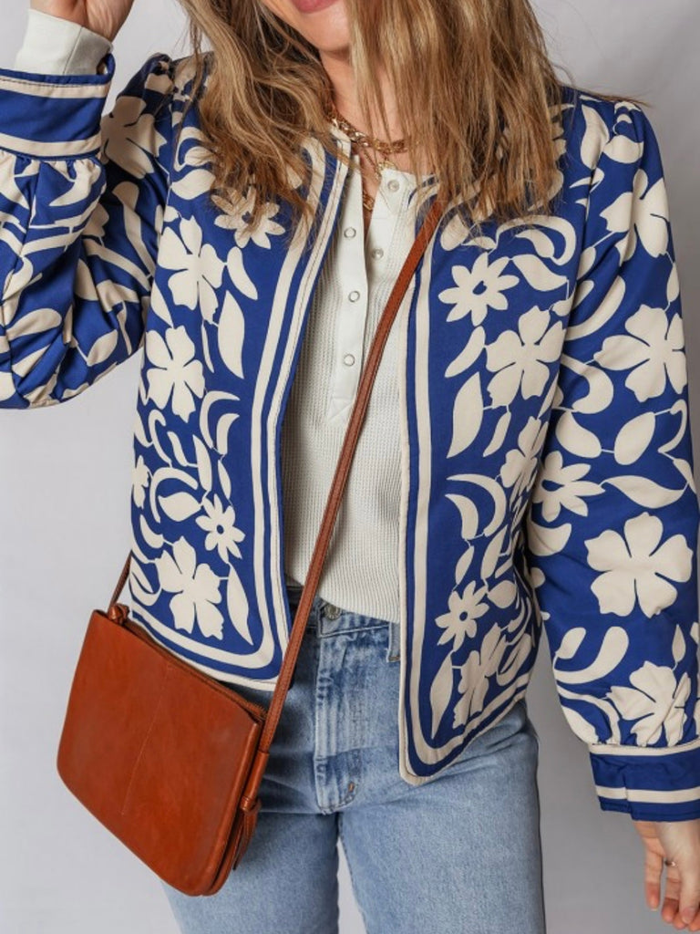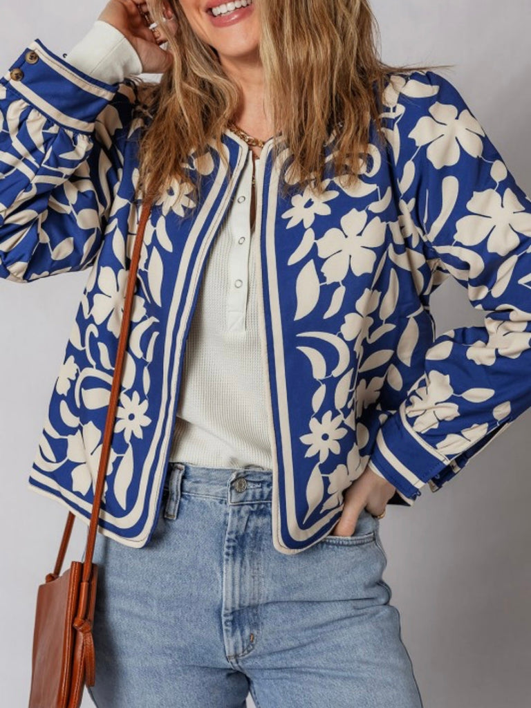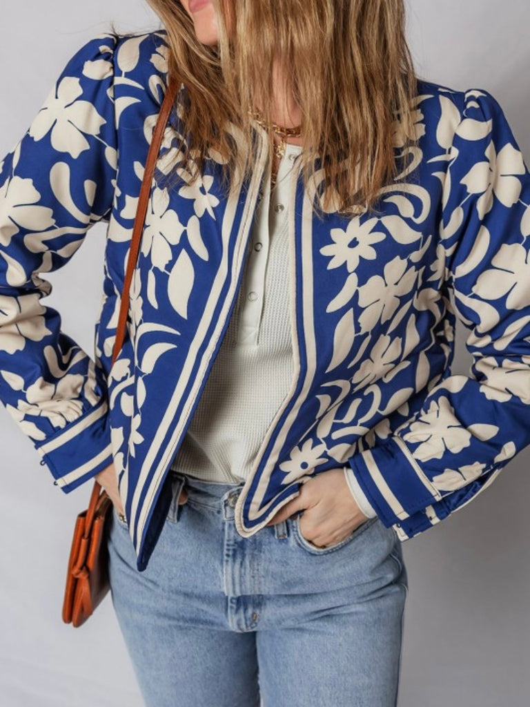 Add a pop of tropical print to your outfit with the Island Stroll Jacket. This structured piece features a vivid blue floral pattern that’s just the right amount of bold. Instantly elevate denim and neutrals.