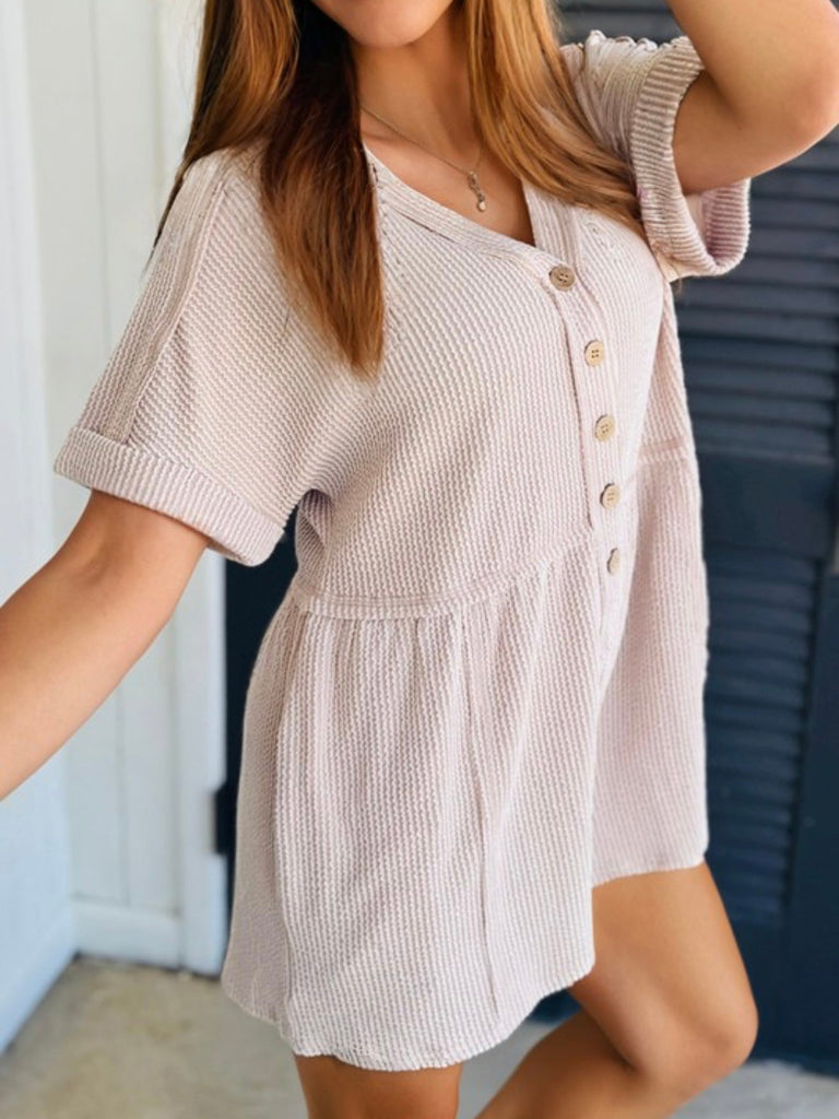 The romper your summer wardrobe’s been waiting for. The Play All Day Romper is soft, lightweight, and effortlessly cool — made with a textured waffle knit that feels as good as it looks. Whether you’re lounging, running errands, or headed to brunch with your besties, this romper has pocket perfection and comfy vibes written all over it.