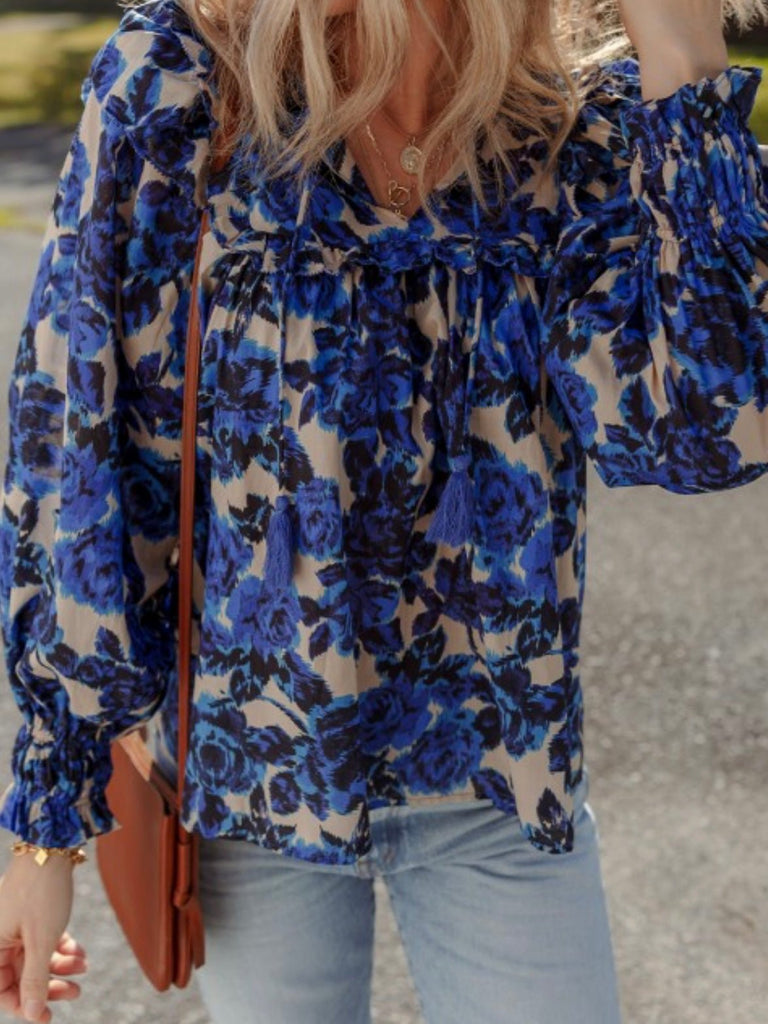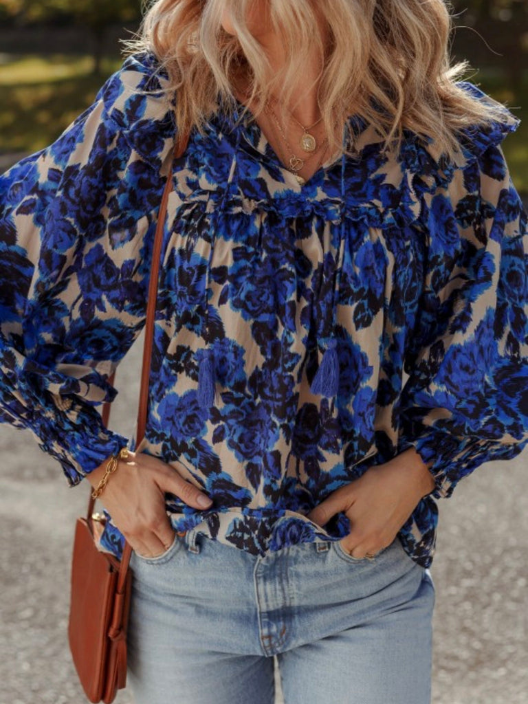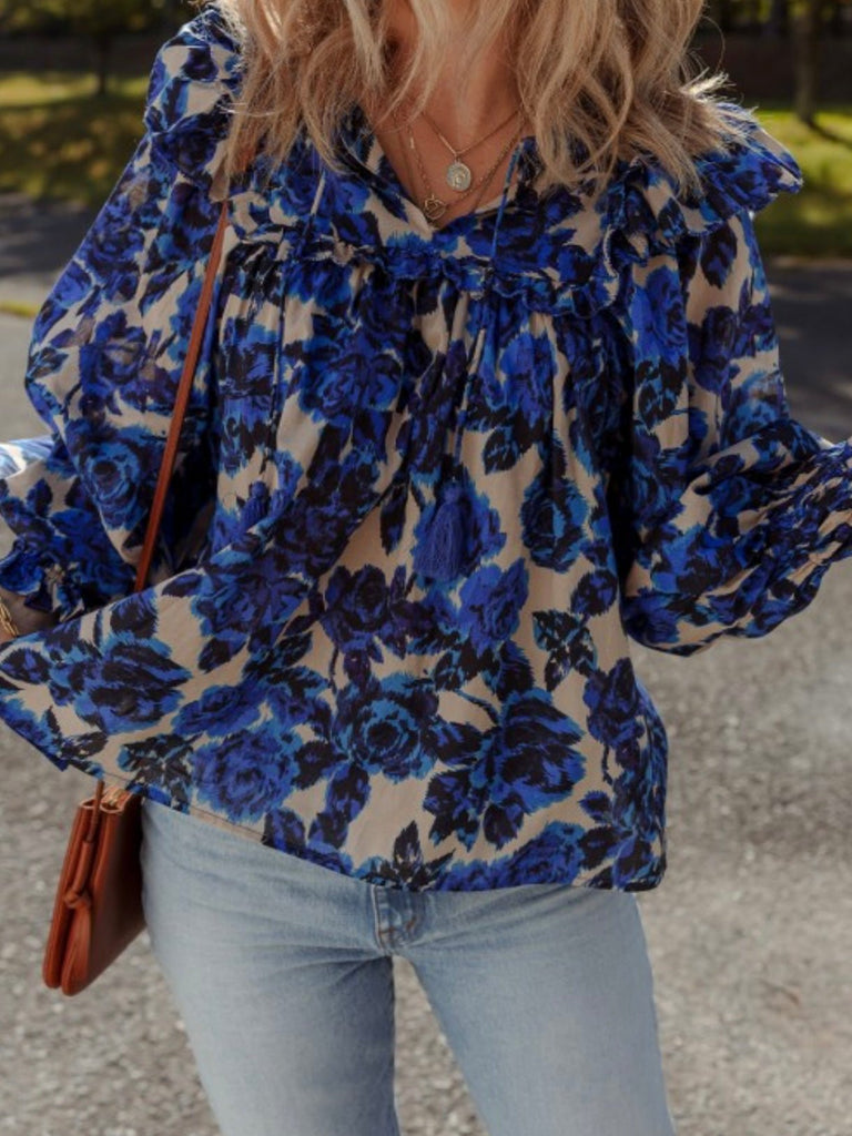 Blue Bloom Ruffle Blouse