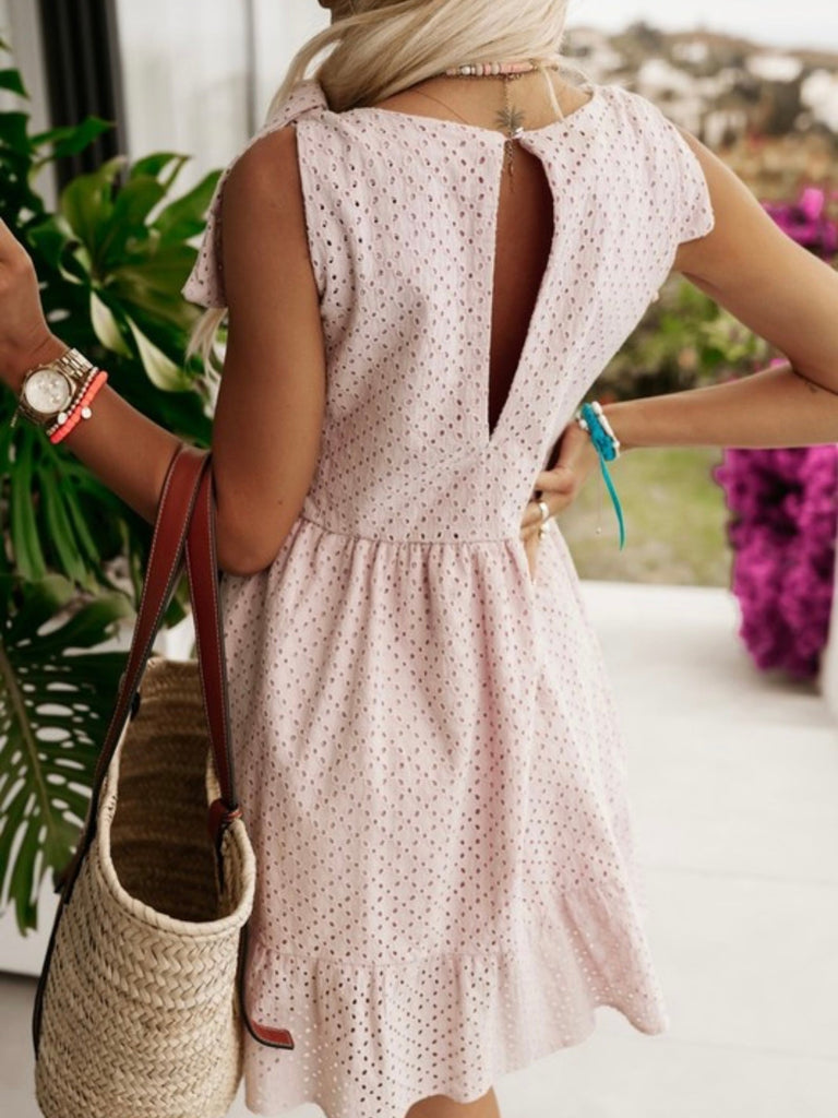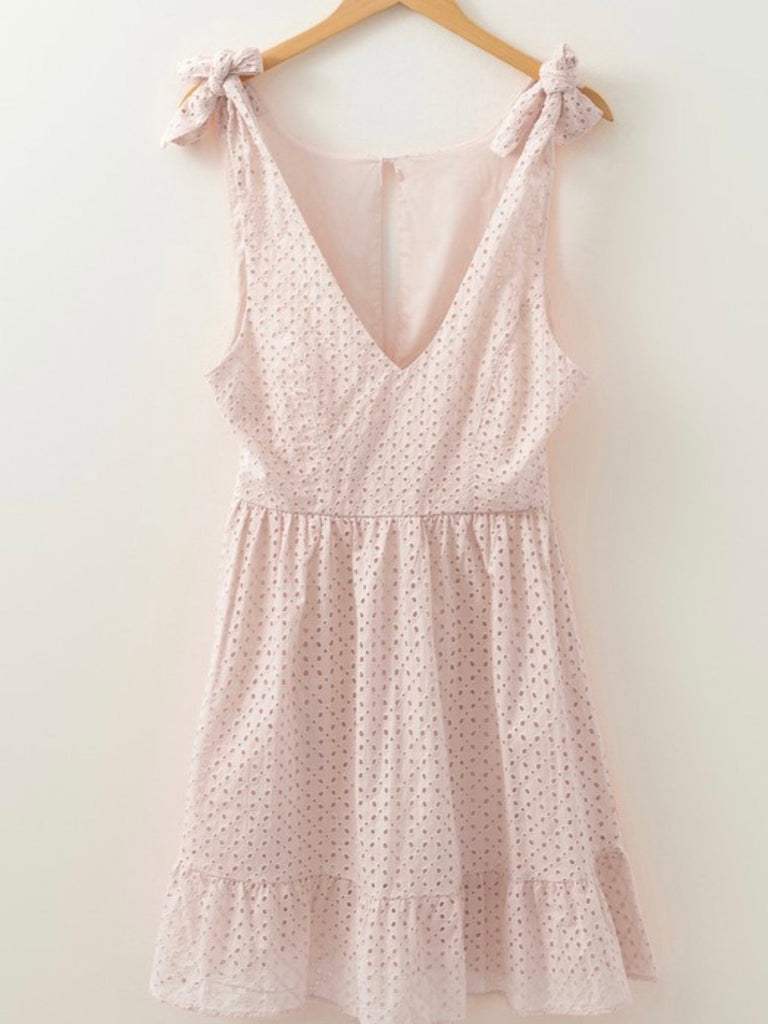 The Blush Bloom Eyelet Dress is your go-to for carefree days and unforgettable photo moments.