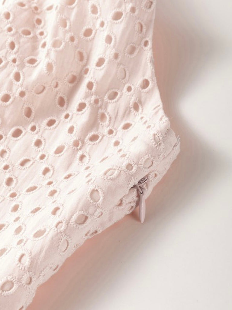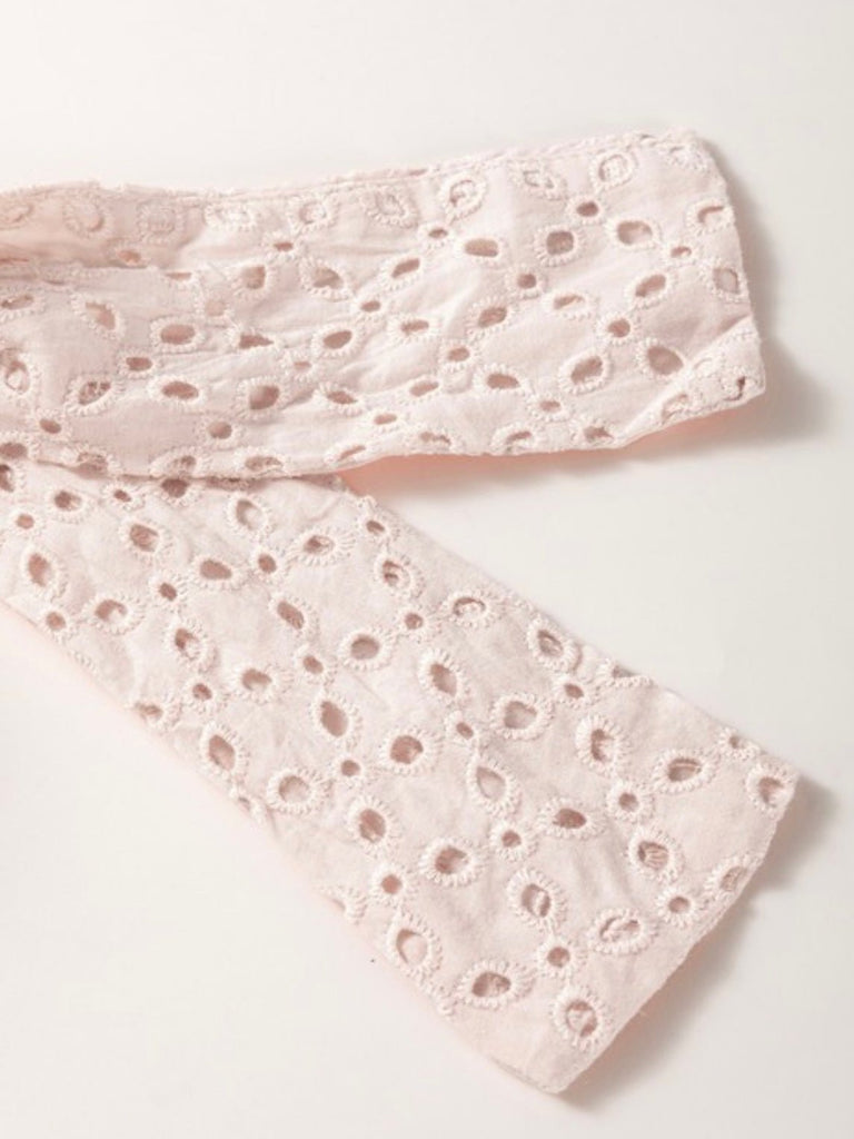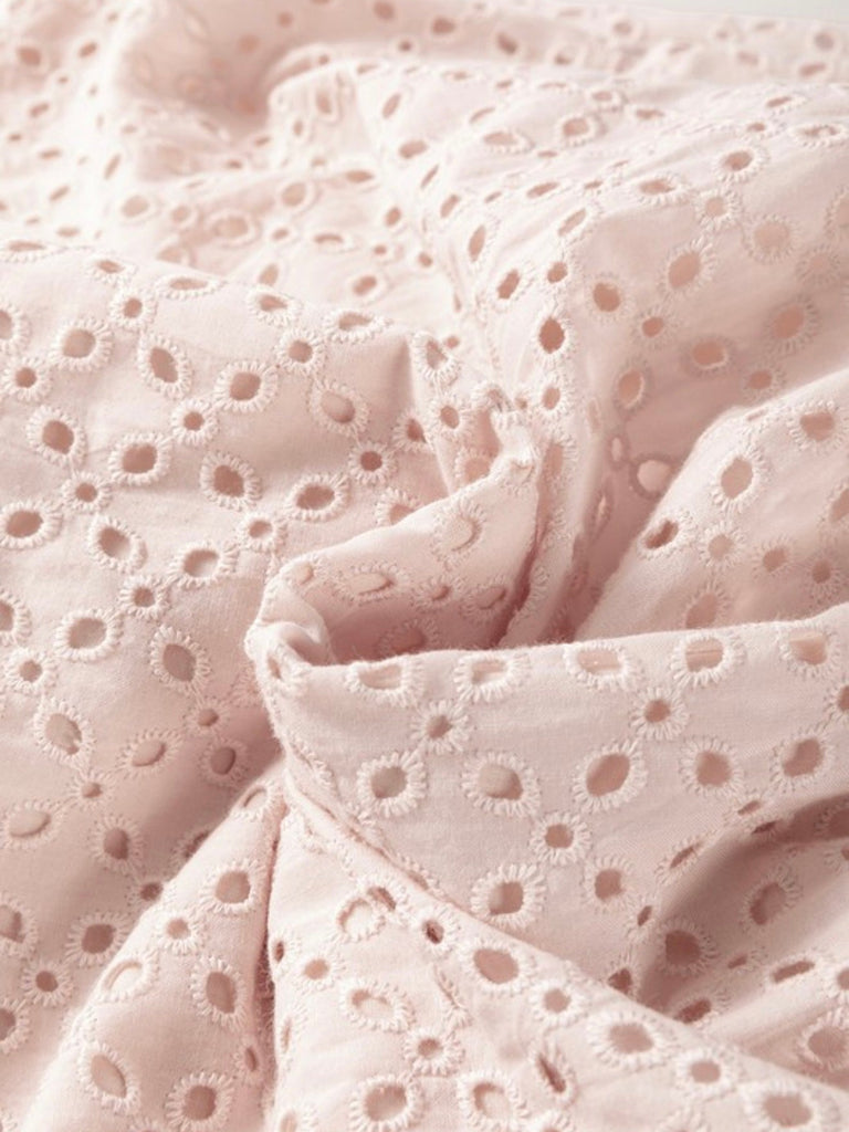 • Soft blush pink with embroidered eyelet fabric