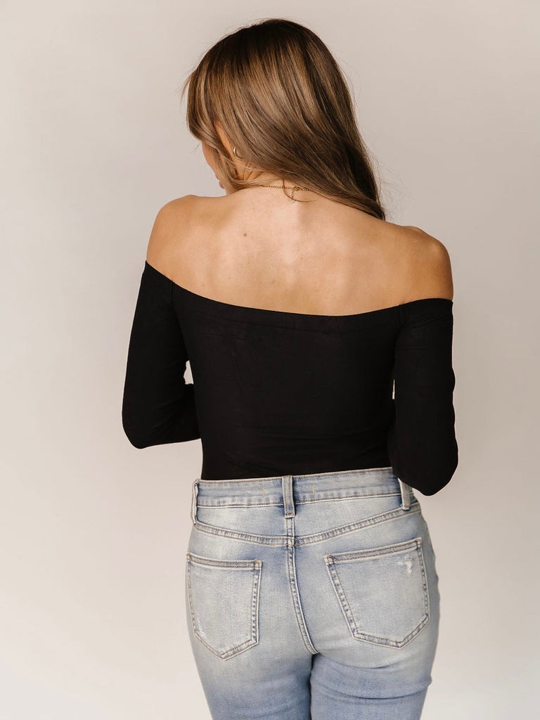 Summer fun won’t leave you hanging with this black boho Jordan Off Shoulder Bodysuit! Featuring long sleeves and off-shoulder design, it’s sure to keep your style game on-point—no matter how the wind blows! With a snap closure and two length options, you’ll be ready to take on the heat in style. #HotSummerVibes!