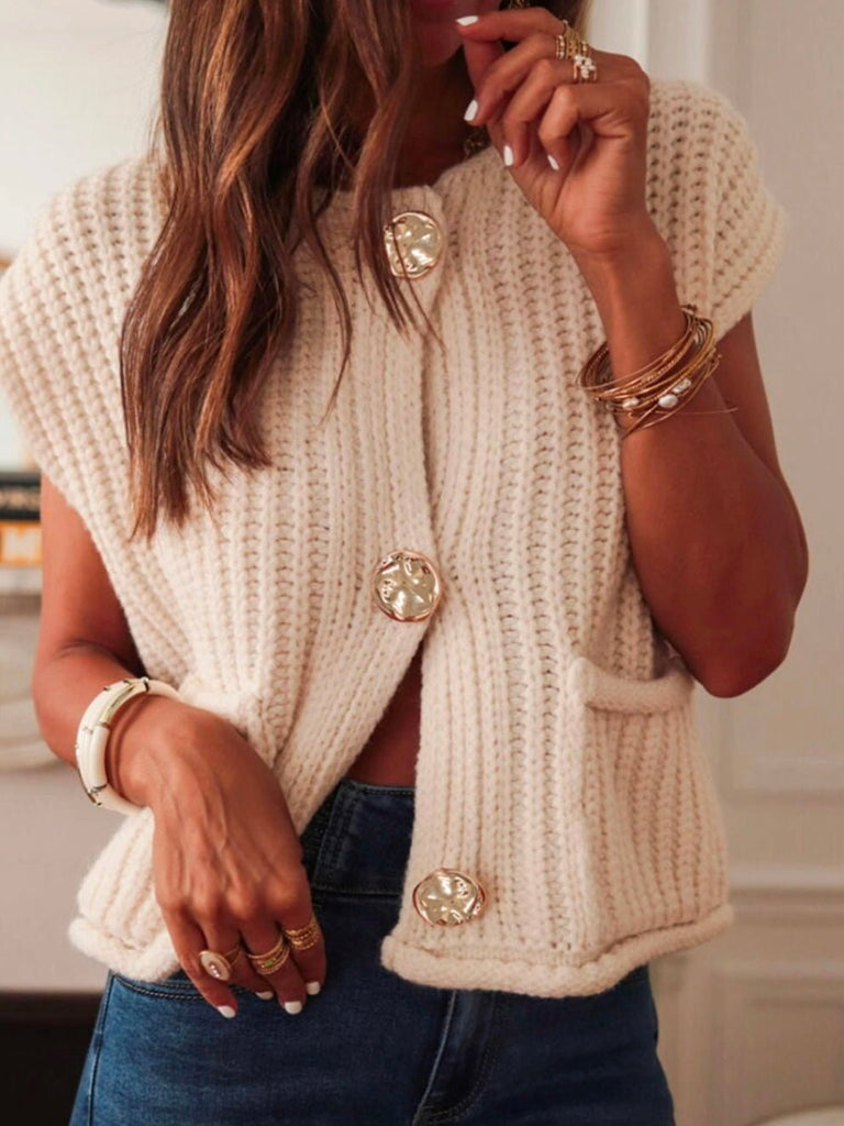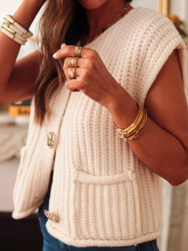 Introducing the Layer Luxe Vest, your go-to piece for effortless style and cozy comfort. This solid cream sweater vest features a beautifully textured knit design and bold button-front detail, combining classic charm with modern versatility. Whether you’re dressing up for a polished look or layering for a relaxed vibe, this vest is a wardrobe essential.