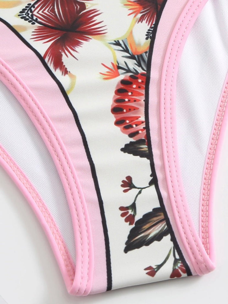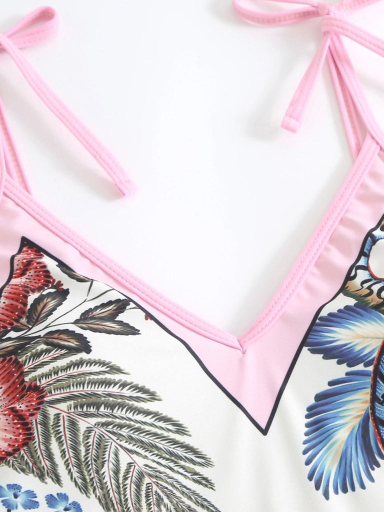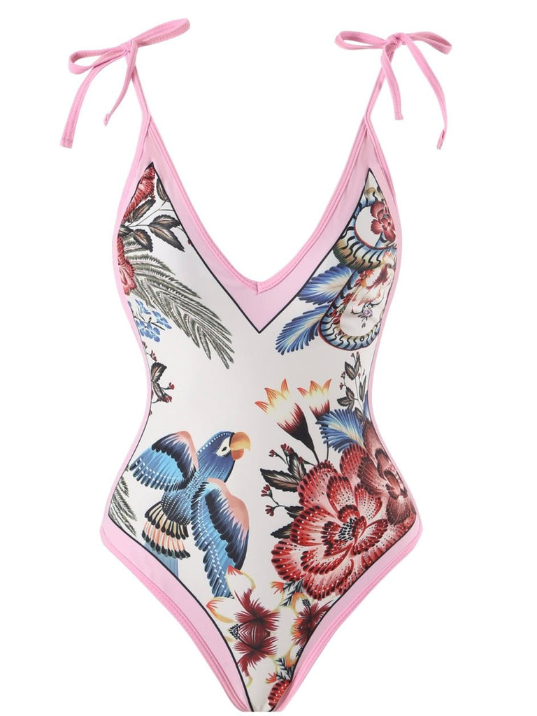 Make a splash in the Pink Paradise Swim Set - a playful and fun addition to your swimwear collection. This set features a one piece swimsuit with adjustable tie shoulder straps for a personalized fit and an elastic stretch fabric that feels incredibly soft and smooth on the body. The wireless design provides comfort and the option for a floral or graphic print adds a touch of quirkiness. And don't forget the matching sarong wrap cover up - knot or tie it for a stylish touch. Model is wearing size S and stands at 68.8" tall with bust, hip, and waist measurements of 35.4", making this set perfect for all body types.