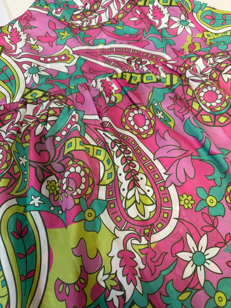 Turn heads in our bestselling Pink Nouveau Top, a stylish throwback that brings retro vibes to your modern wardrobe. With its flattering v-neckline and playful bubble sleeves, this flowy top is a nod to vintage charm, perfect for creating chic, standout looks.