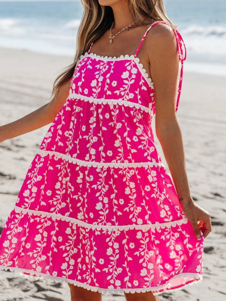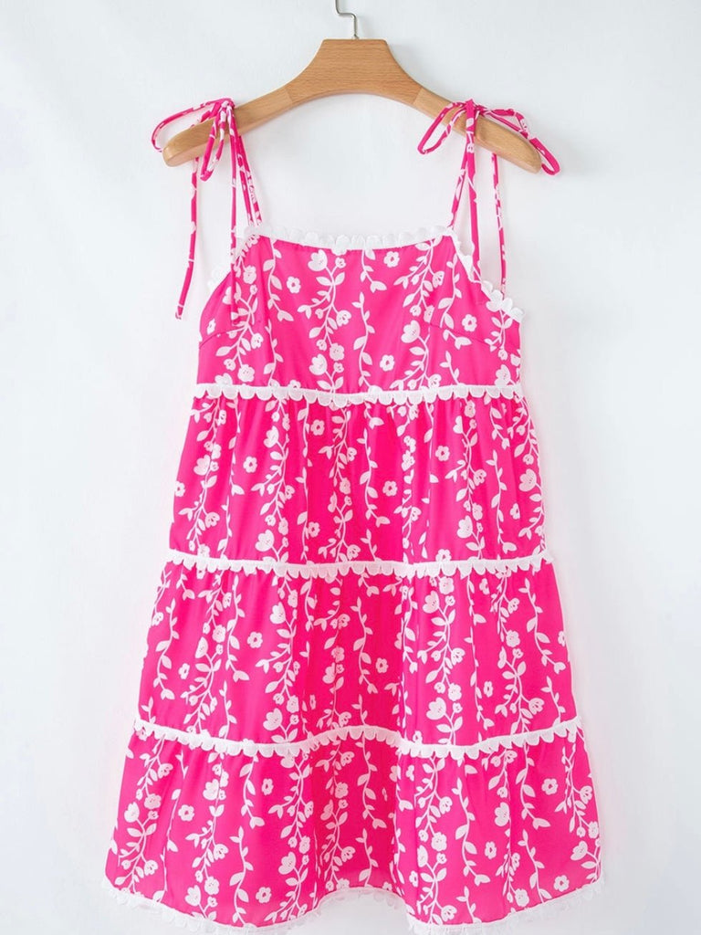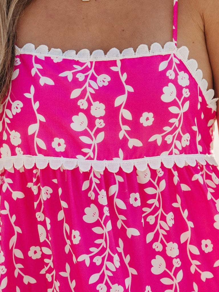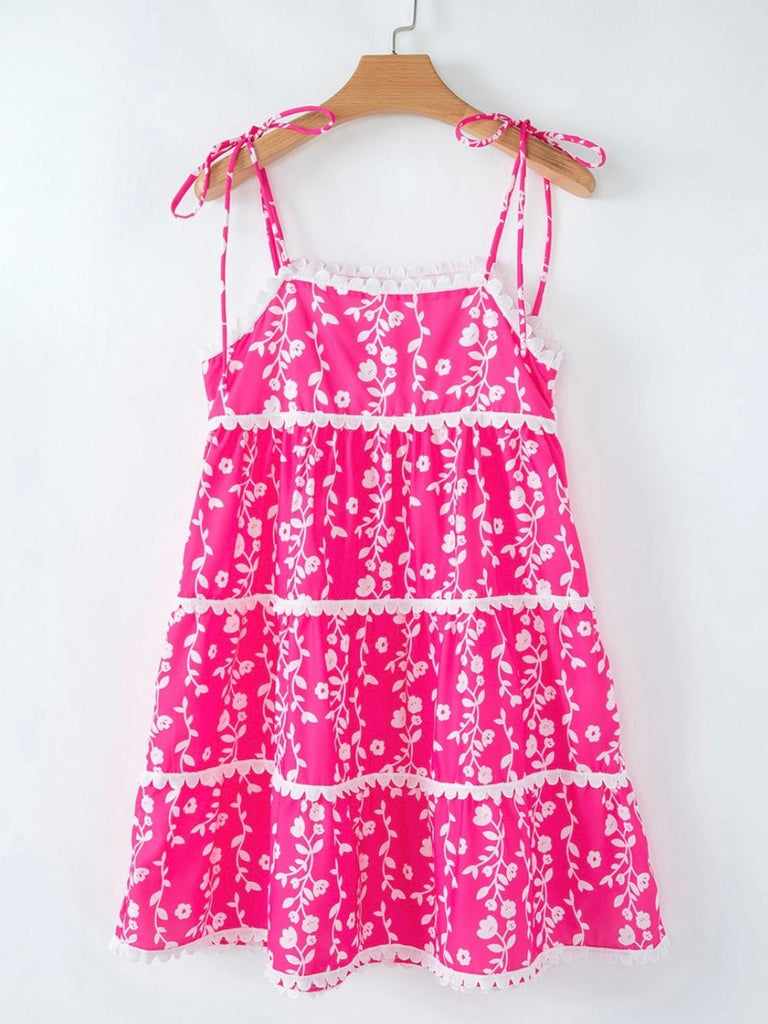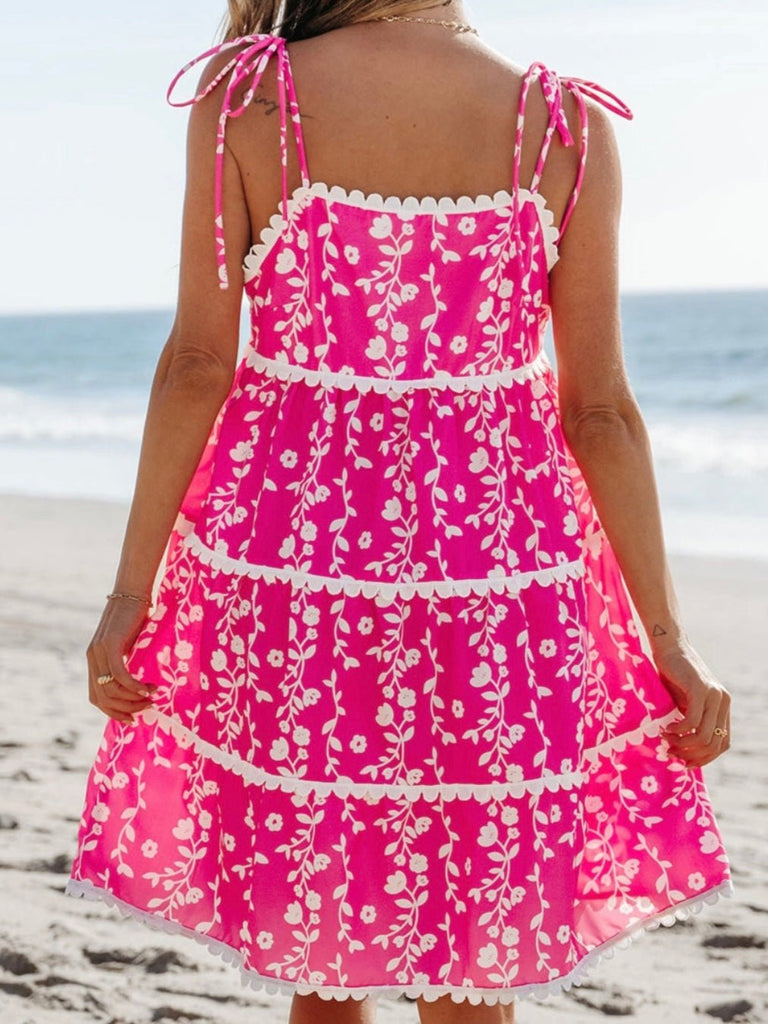 Step into sunshine and style with the Pink Soleil Dress—a vibrant, flirty piece designed for dreamy days and golden-hour moments. Featuring a bold floral print and delicate ric rac detailing, this dress effortlessly blends playful charm with bohemian elegance. The tie-shoulder straps offer a customizable fit, while the tiered silhouette creates a breezy, flowy movement that’s perfect for warm-weather adventures. Whether you're strolling the beach, heading to brunch, or dancing the night away, this dress is a must-have for every free-spirited fashionista.