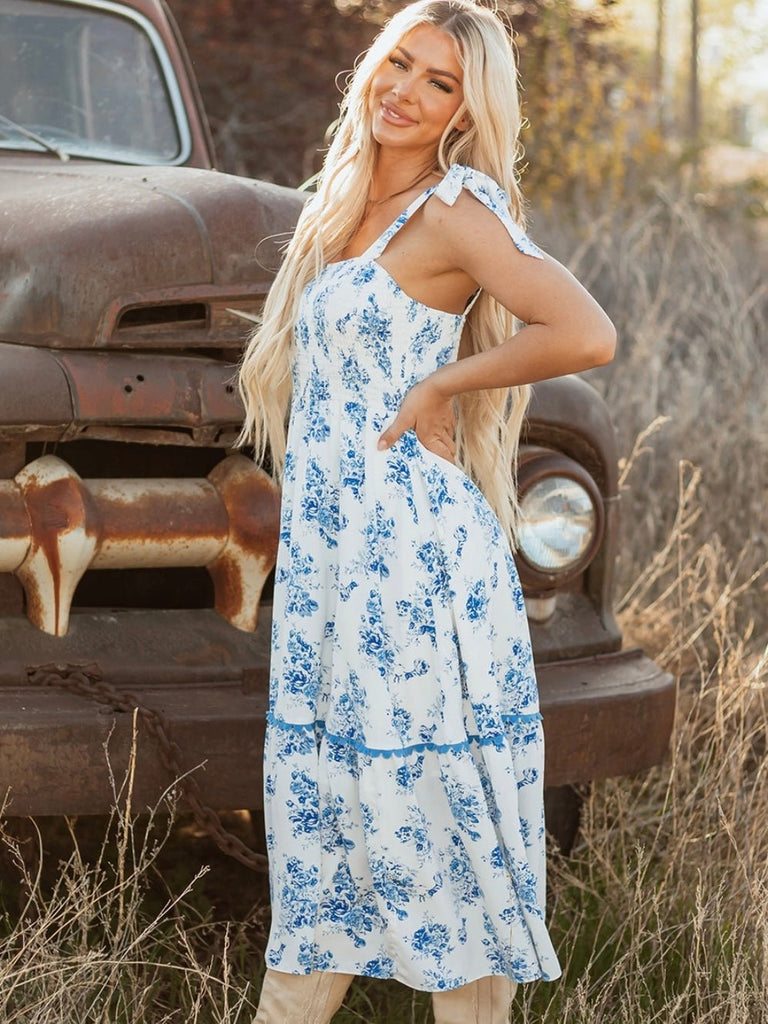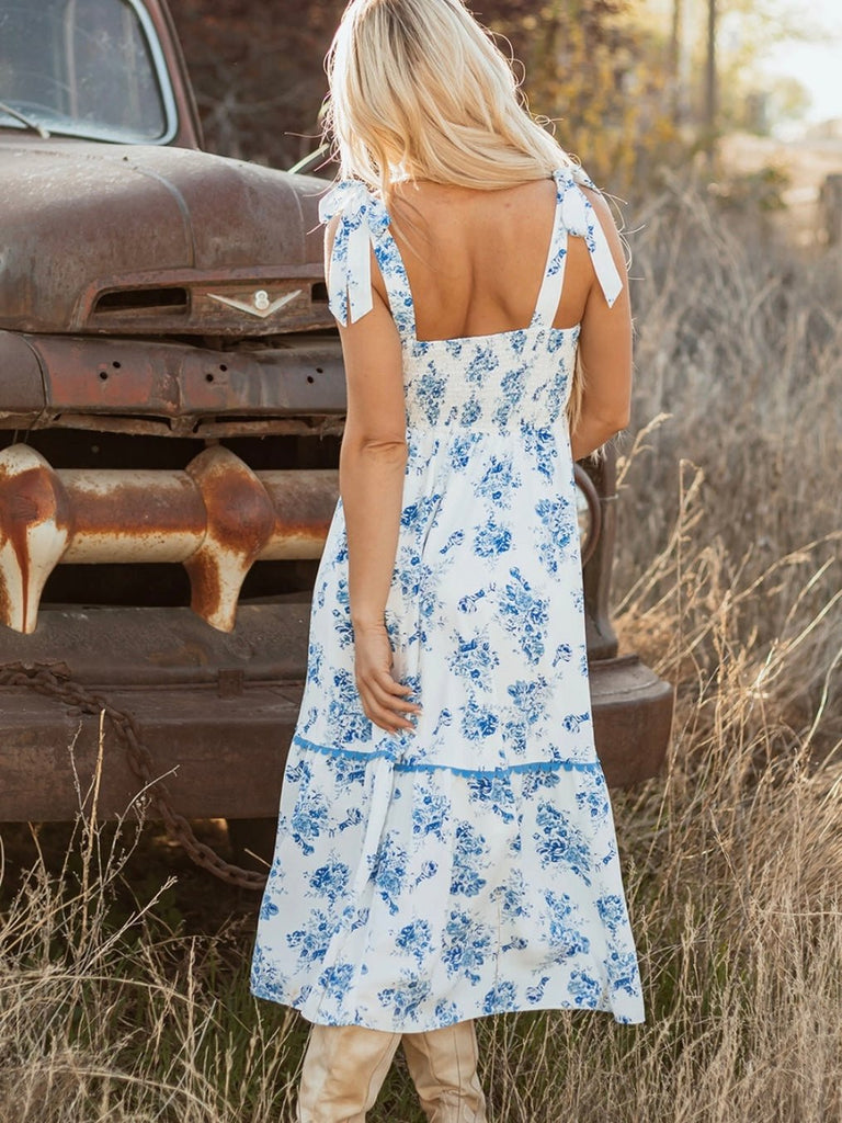 Say hello to your next summer crush. The Porcelain Blue Dress is a breath of fresh air in soft white and blue floral print, designed to turn heads with its flattering, feminine silhouette. From garden parties to weekend getaways, this dress brings the charm.