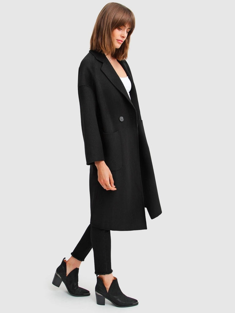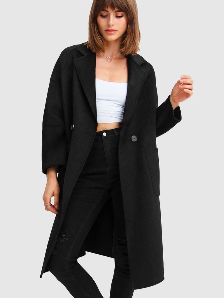 Channel effortless sophistication with the Publisher Wool Blend Coat, inspired by the timeless style of global fashion editors. This modern, oversized double-breasted coat is a fresh take on the classic tailored notched collar coat, exuding confidence and chic elegance. Designed to emit boss-girl vibes, it’s perfect for elevating your winter workwear or layering over casual ensembles for an elevated everyday look.