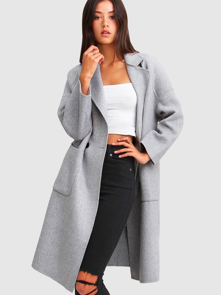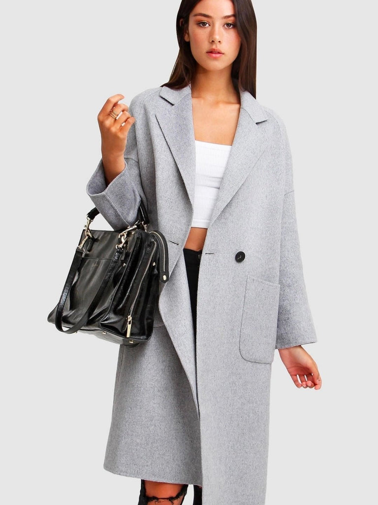 Channel effortless sophistication with the Publisher Wool Blend Coat, inspired by the timeless style of global fashion editors. This modern, oversized double-breasted coat is a fresh take on the classic tailored notched collar coat, exuding confidence and chic elegance. Designed to emit boss-girl vibes, it’s perfect for elevating your winter workwear or layering over casual ensembles for an elevated everyday look.