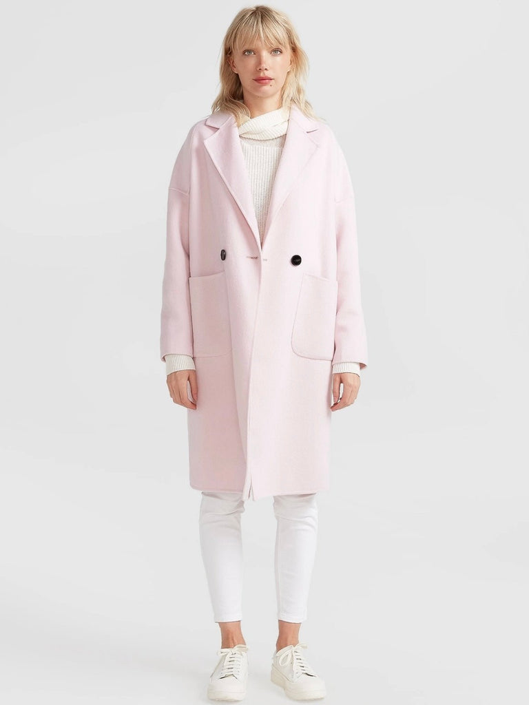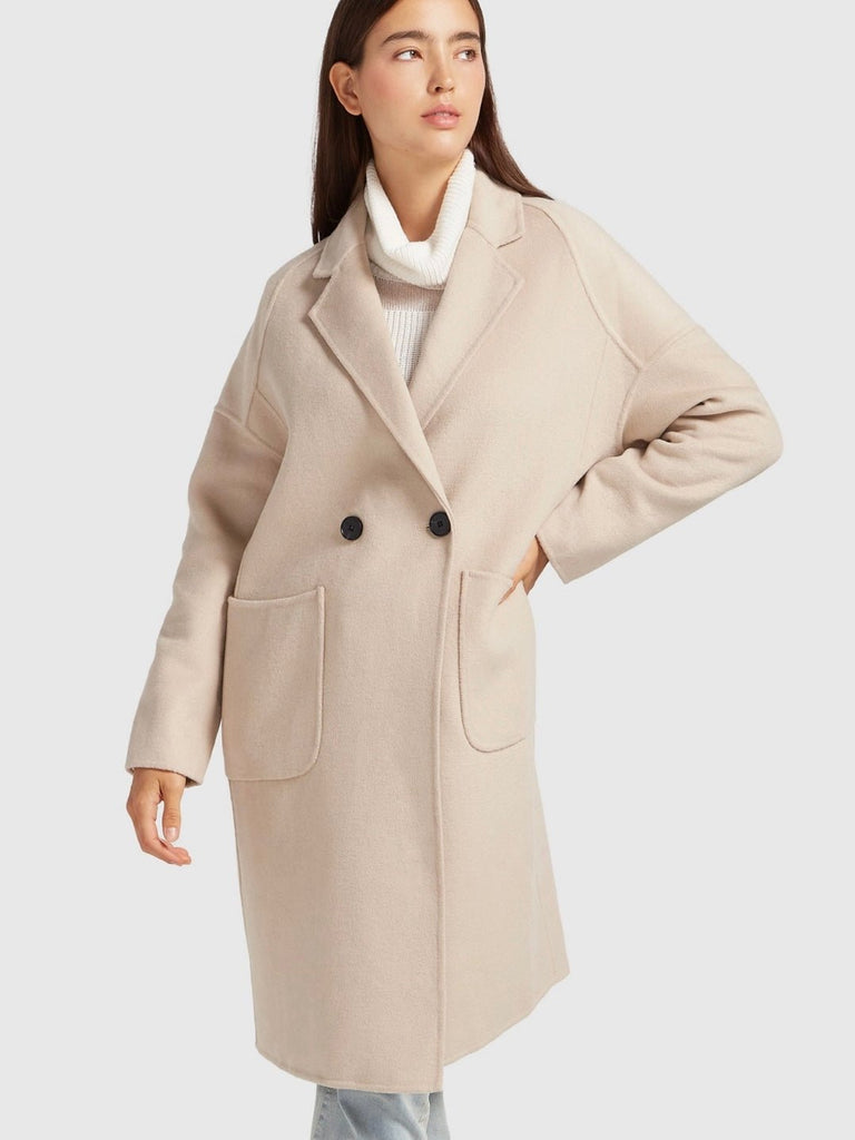 Inspired by global fashion editors, the Publisher Double-Breasted Wool Blend Coat in an oversized fit is the modern take on the tailored notched collar coat. This smart casual piece coat emits boss girl vibes for your winter workwear style. Designed for an oversized fit. Take your usual size for the intended look or size down for a neater look.