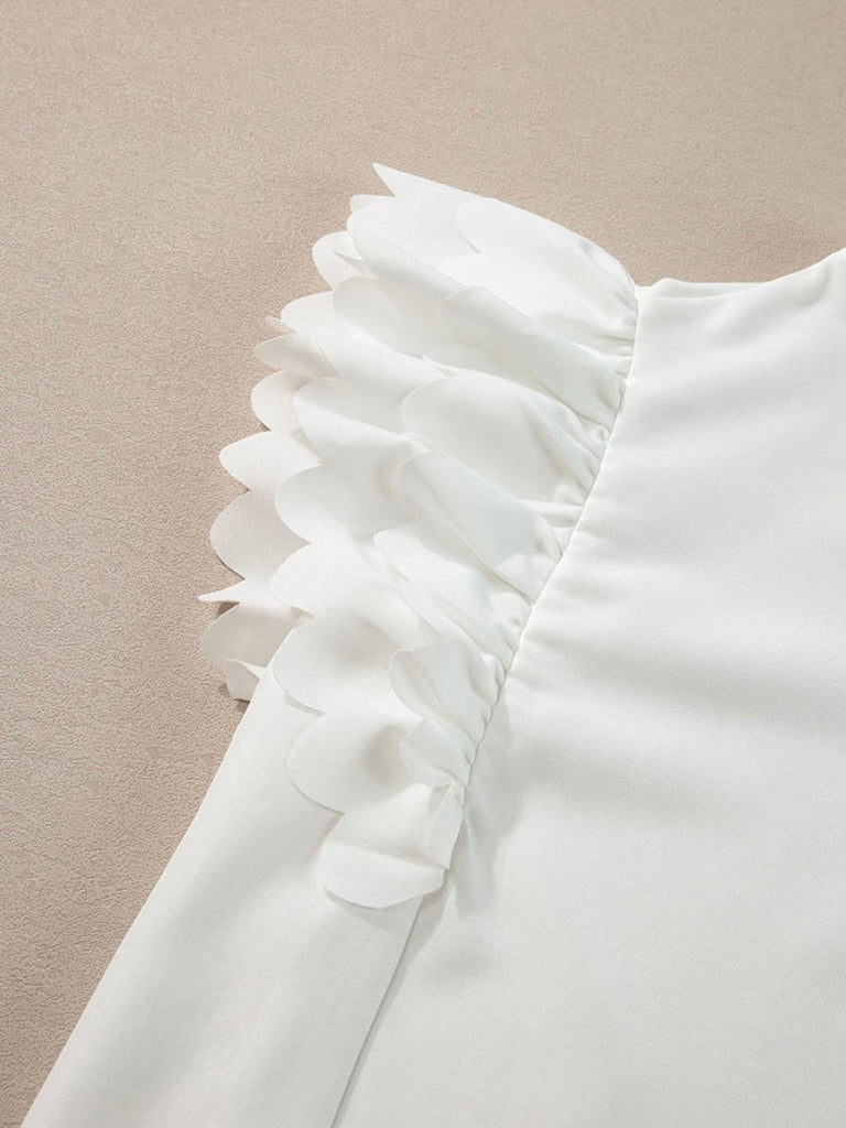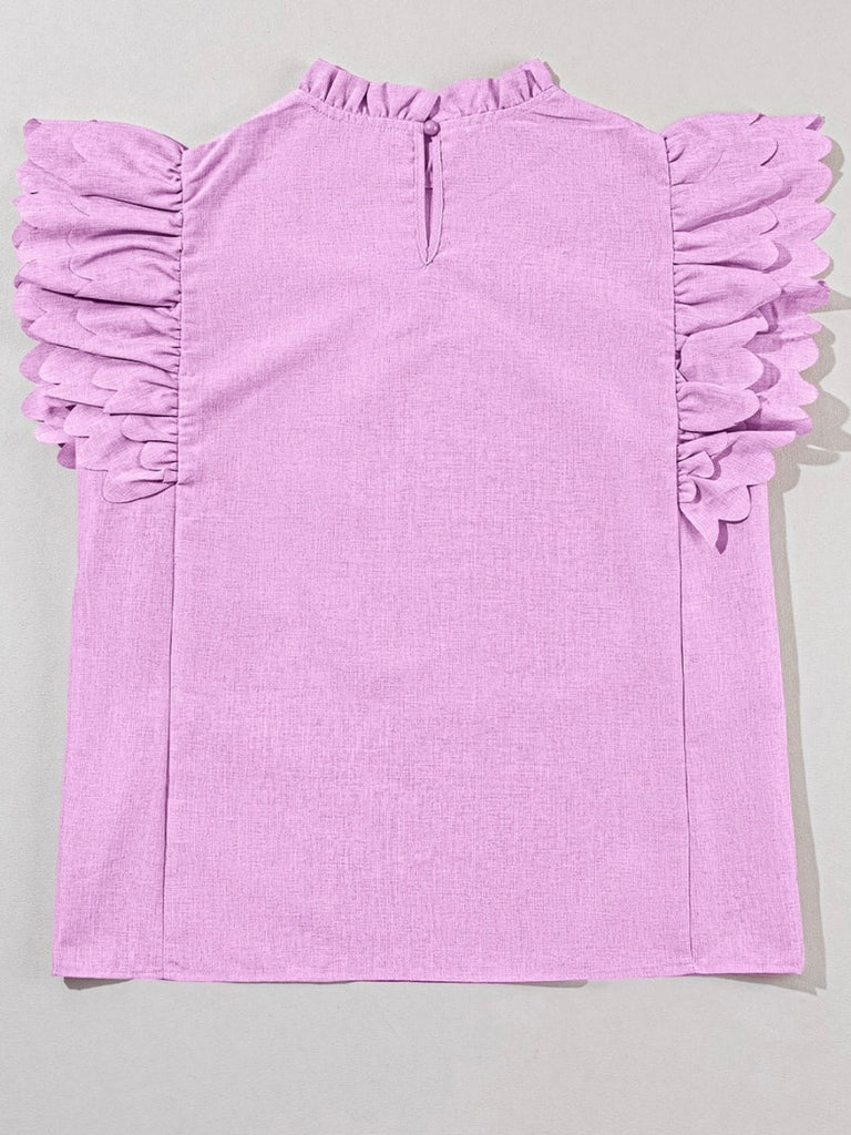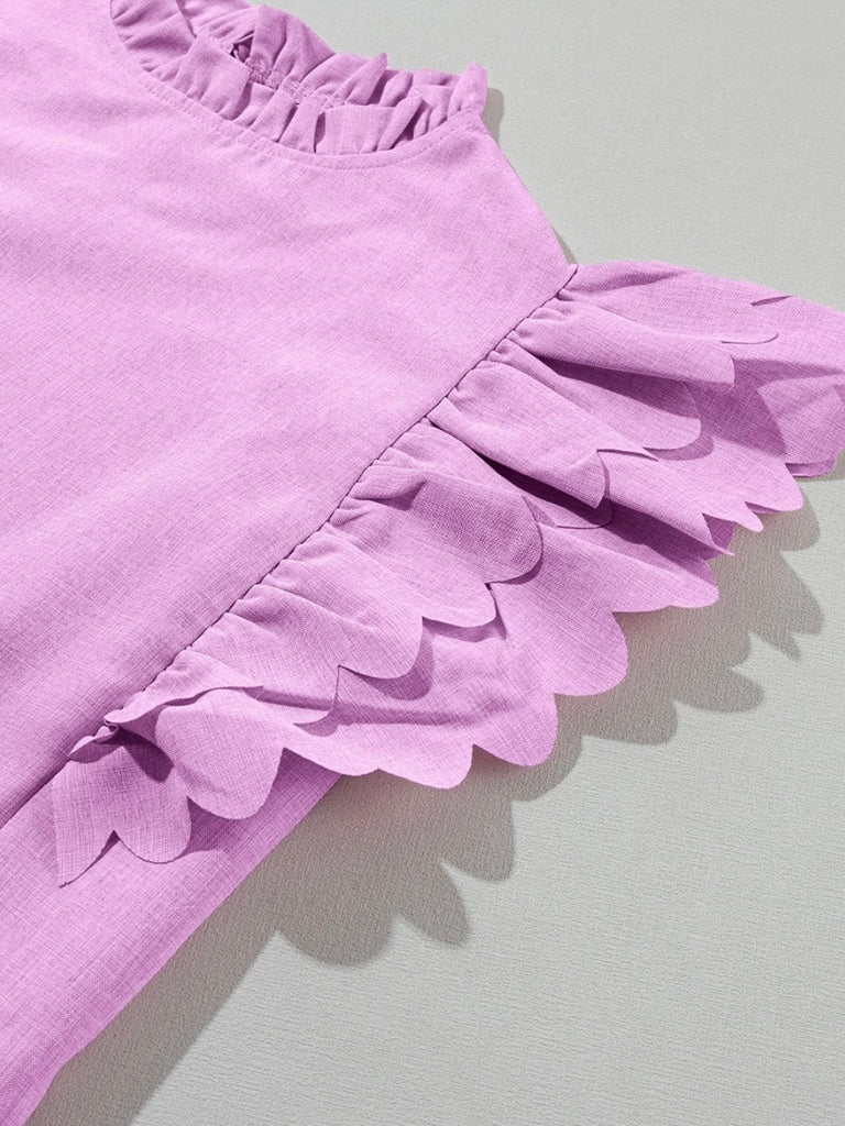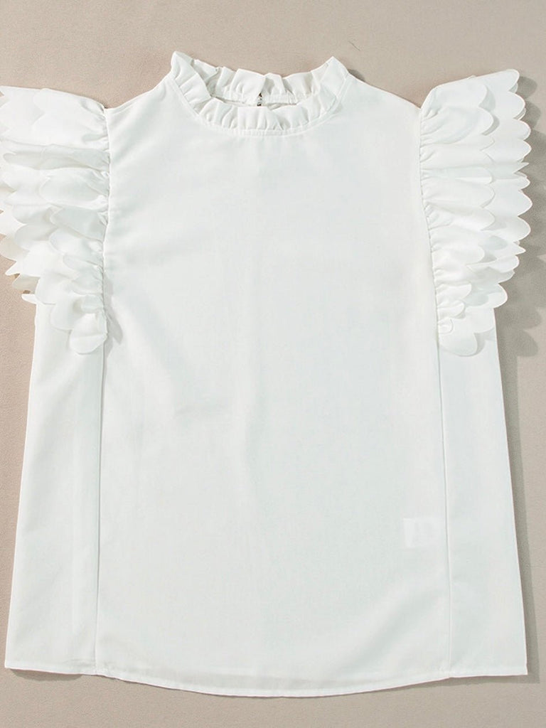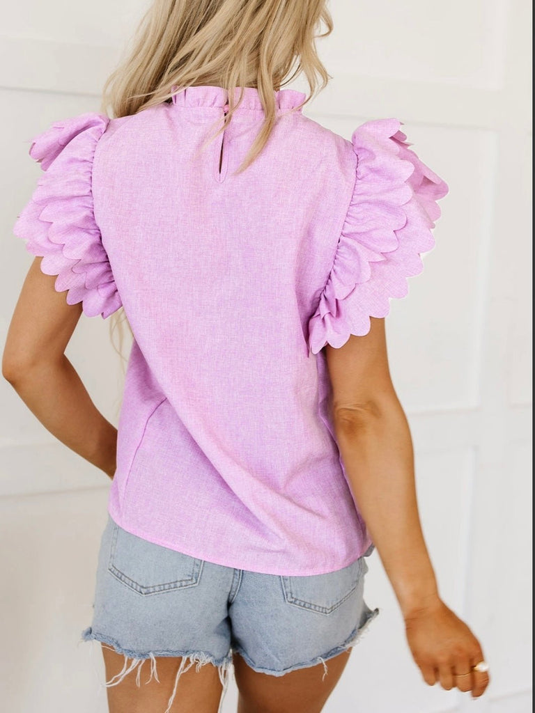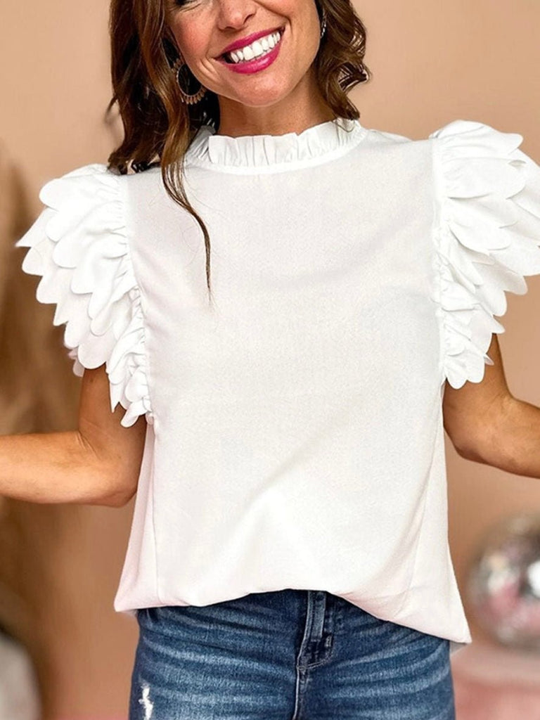 Sweeten up your wardrobe with the Rachel Ruffle Sleeve Top! This effortlessly cute and casual top features an oversized silhouette that offers ultimate comfort while keeping your style on point. The bold, scalloped ruffle sleeves add a playful twist, and the round neckline with a dainty ruffle detail brings just the right amount of charm. Available in soft pink or classic white, it's perfect for any casual day out and about, or at the office.