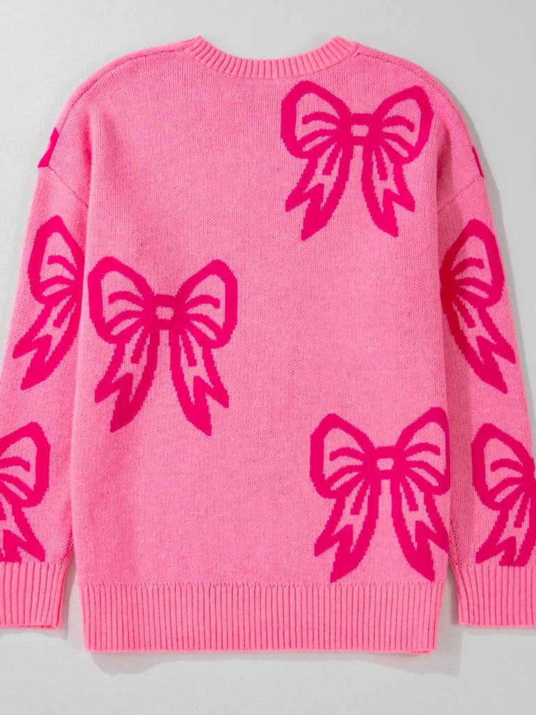 Stay warm and stylish all season long with the Rose Ribbon Sweater!