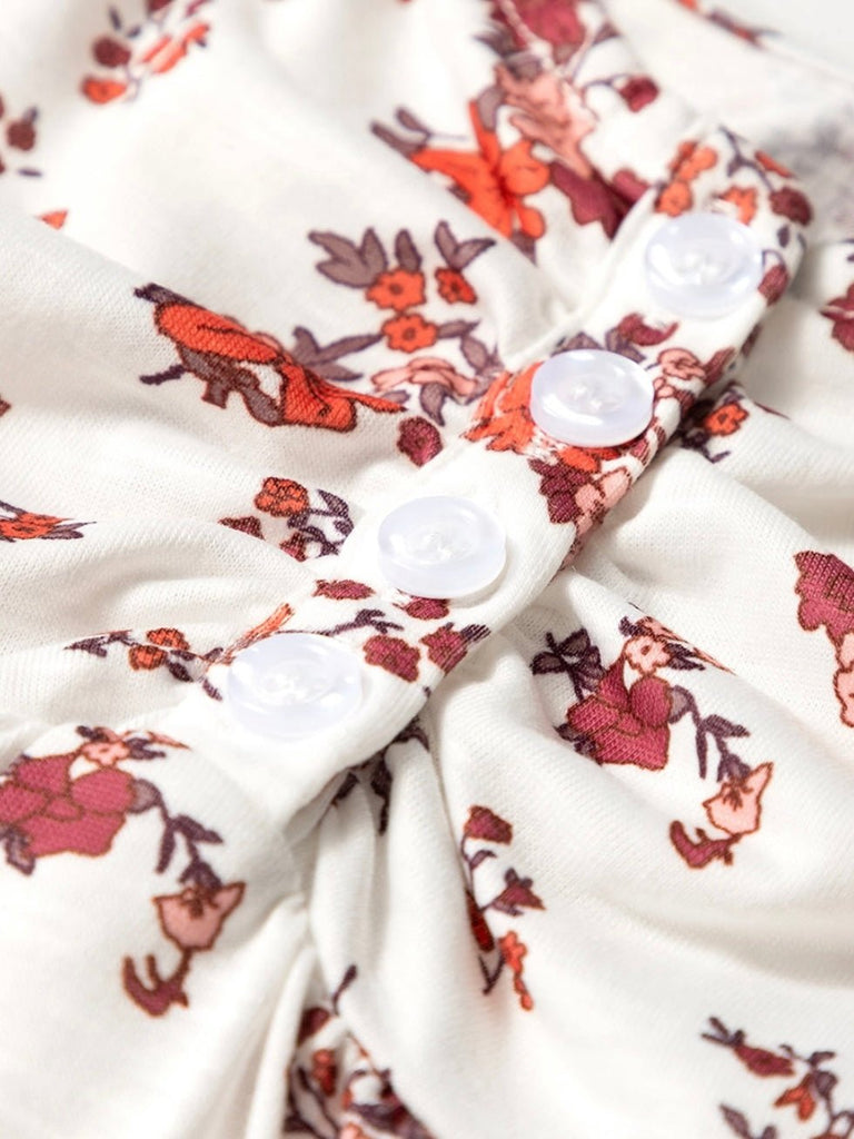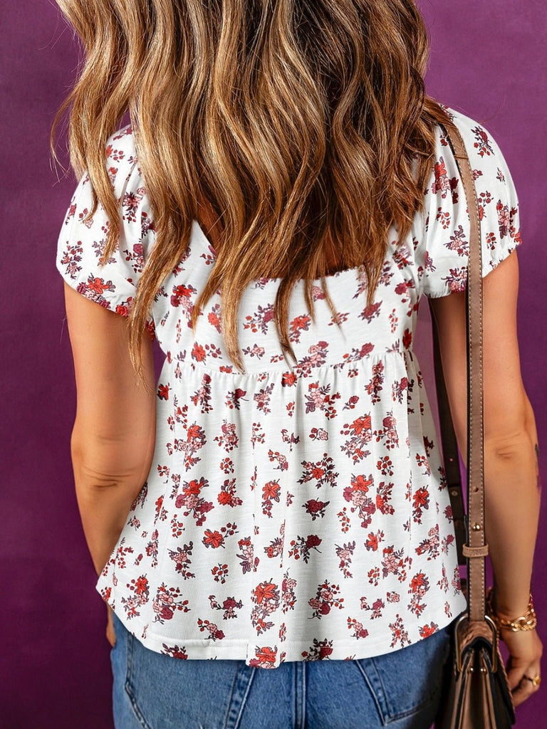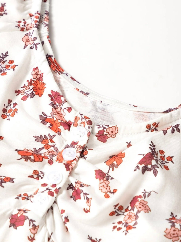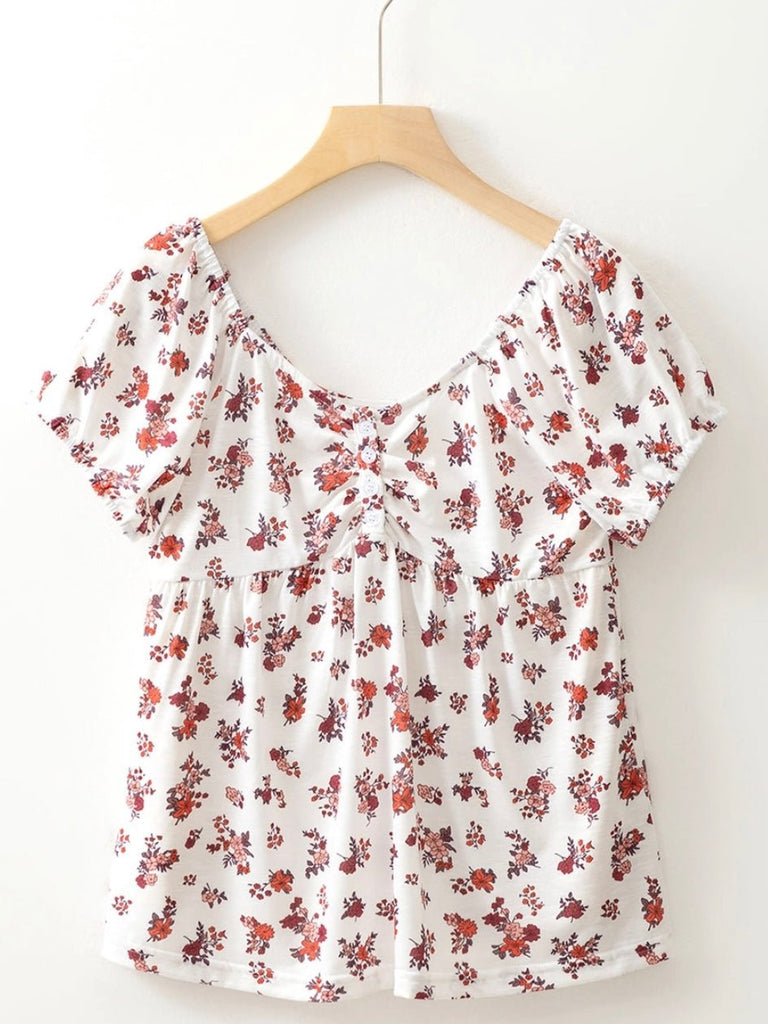 Say hello to sunshine days and sweet florals in the Rosy Outlook Top. This flattering baby doll silhouette is made even more charming with puff sleeves, ruched bust detail, and a scattering of rosy red florals. Soft and stretchy with a vintage flair, it’s a wear-on-repeat favorite.