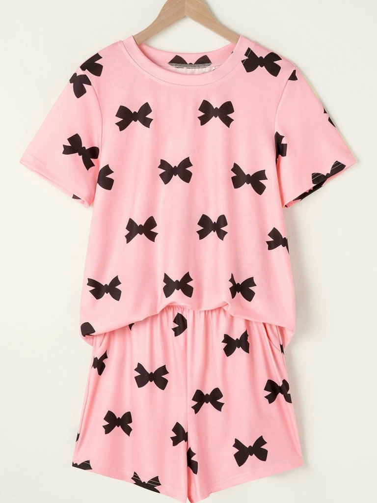 Drift off in style and comfort with the Sweet Bow Dreams Set, the perfect mix of cute, cozy, and effortlessly chic. Designed in a soft pink hue with playful black bow prints, this loungewear set brings a touch of femininity and fun to your nighttime or lazy-day wardrobe. The relaxed-fit tee and comfy elastic-waist shorts offer an easy, breathable feel, while the Polyester/Spandex blend keeps things soft and stretchy.