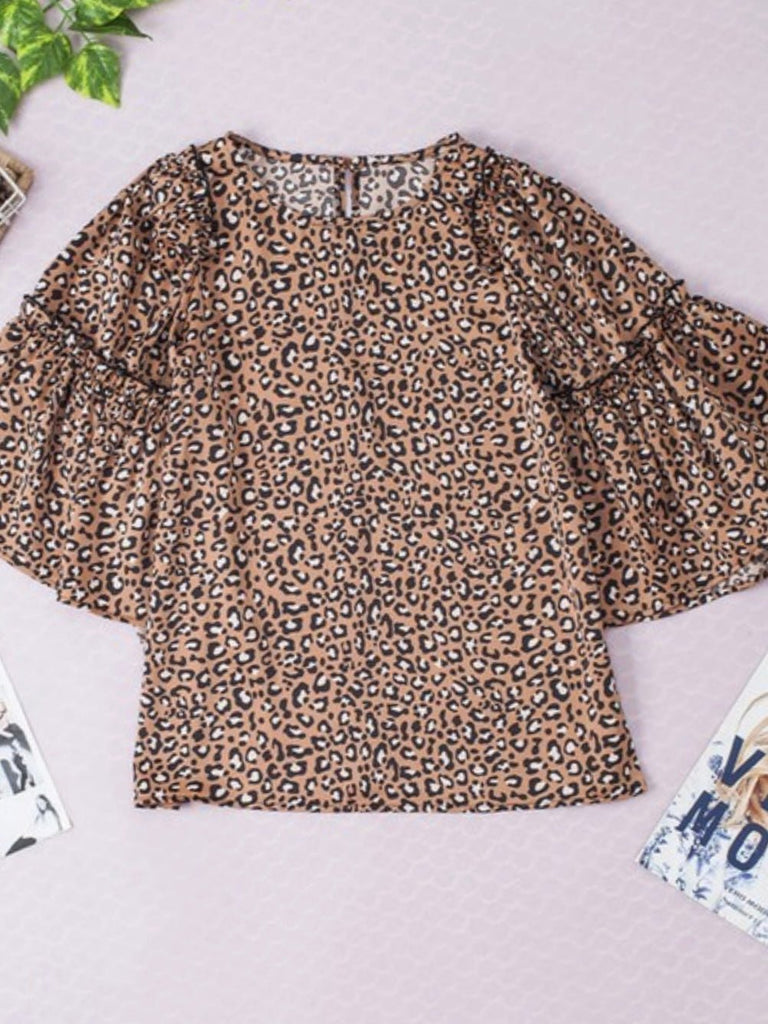 📌 leopard blouse Canada, boutique tops online, fall fashion top, bell sleeve top for women