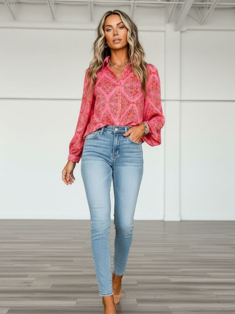 The Wildflower Escape Top is your instant mood-brightener—light, airy, and effortlessly feminine. Covered in a stunning wildflower print, this vibrant pink blouse features soft balloon sleeves and a relaxed button-front silhouette that feels polished yet totally carefree.