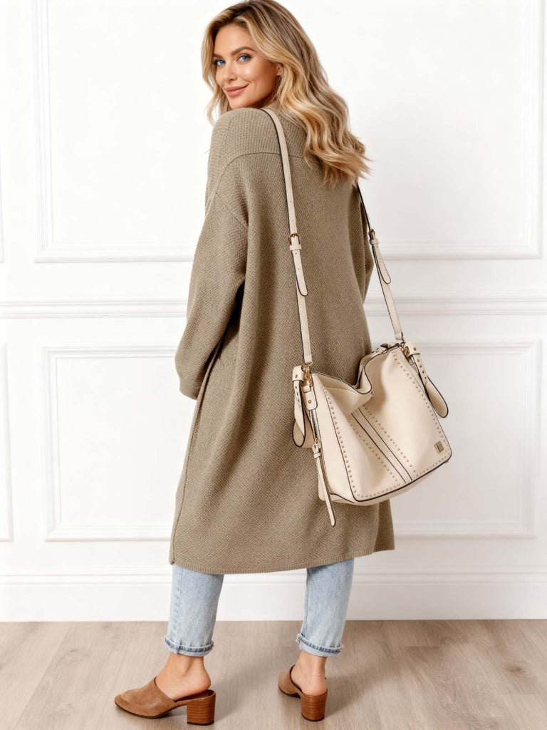 Stay wrapped in warmth with the Cozy Haven Knit Cardigan. This oversized midi-length sweater coat is the definition of cozy-chic, with its textured knit and easy open-front design. Perfect for fall mornings, coffee runs, or throwing over anything for instant style points.