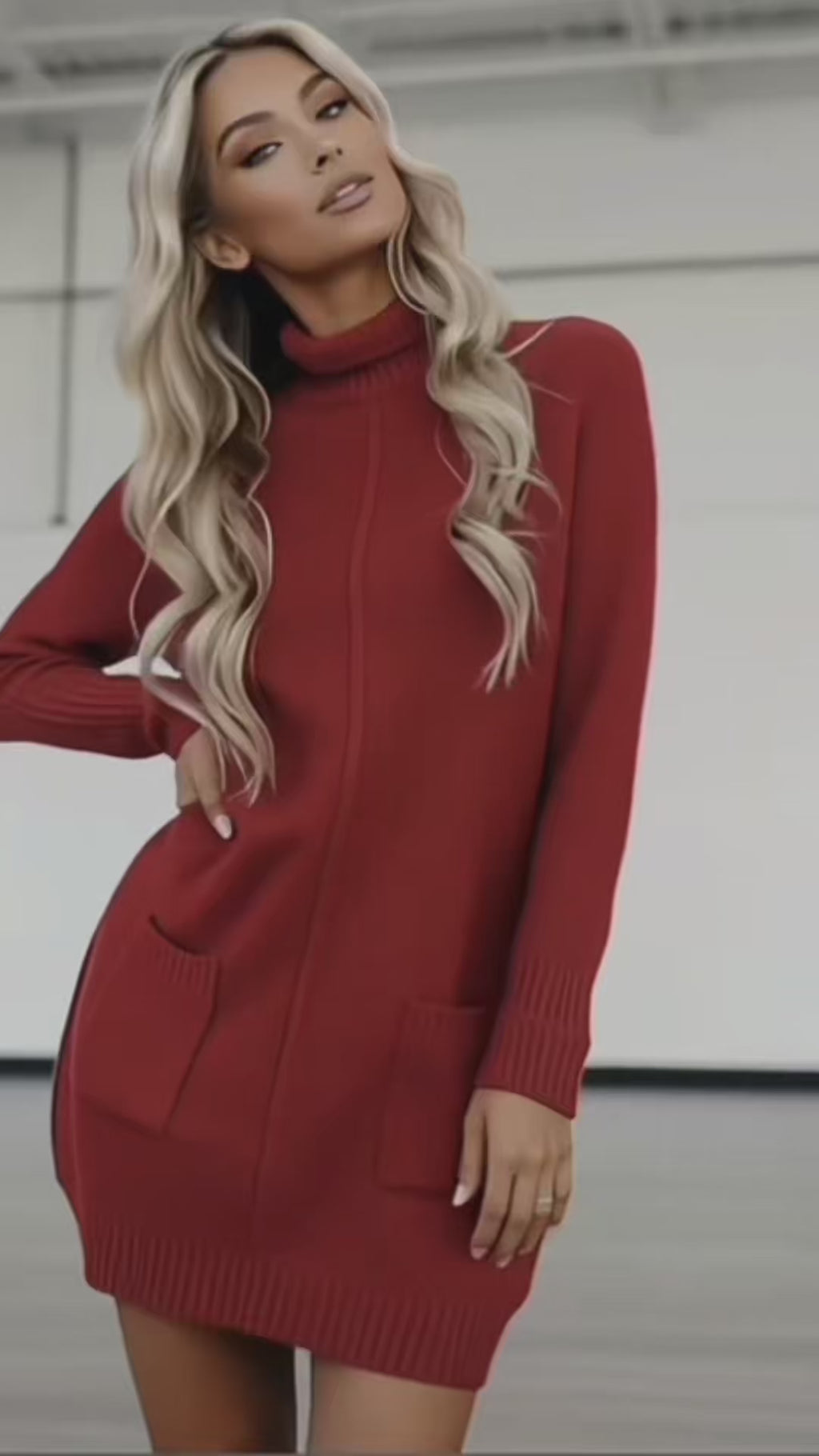 Warm, effortless, and endlessly wearable — the Crimson & Clay Sweater Dress is your go-to for cozy days that still call for style. Designed with a flattering high neckline, ribbed knit texture, functional front pockets, and a center seam that creates a streamlined silhouette, this shift dress blends boho charm with everyday ease.