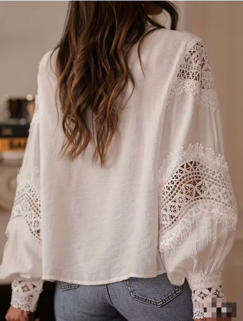 The Ivory Grace Lace Blouse is a dreamy blend of vintage charm and modern boho elegance. Featuring intricate lace panels at the neckline, shoulders, and sleeves, this top is designed to make you feel feminine, stylish, and completely unforgettable. The high neckline with scalloped trim adds a touch of sophistication, while the billowy sleeves and lightweight fabric keep the fit relaxed and comfortable.