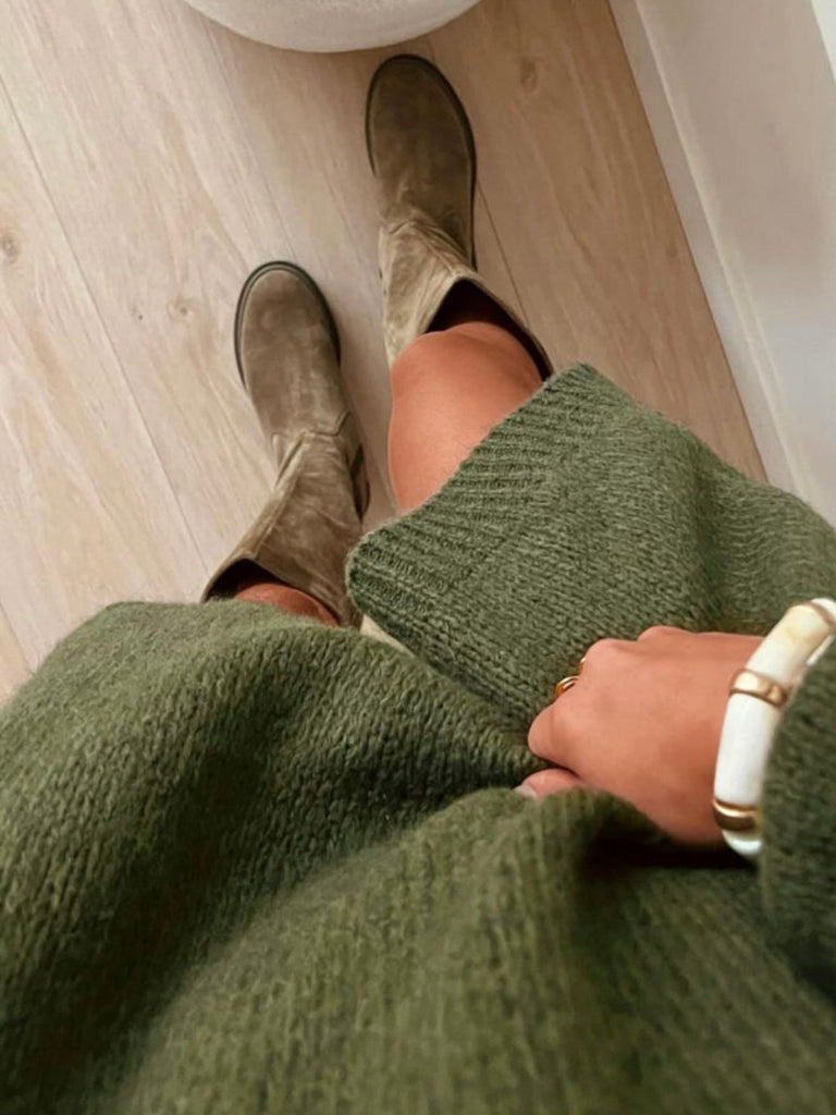 The knit dress you’ll never want to take off. Designed in a deep clover green, the Cedar Lane Sweater Dress blends effortless comfort with understated boho charm. Its oversized silhouette drapes beautifully, making it a cozy yet elevated piece for fall and winter styling.