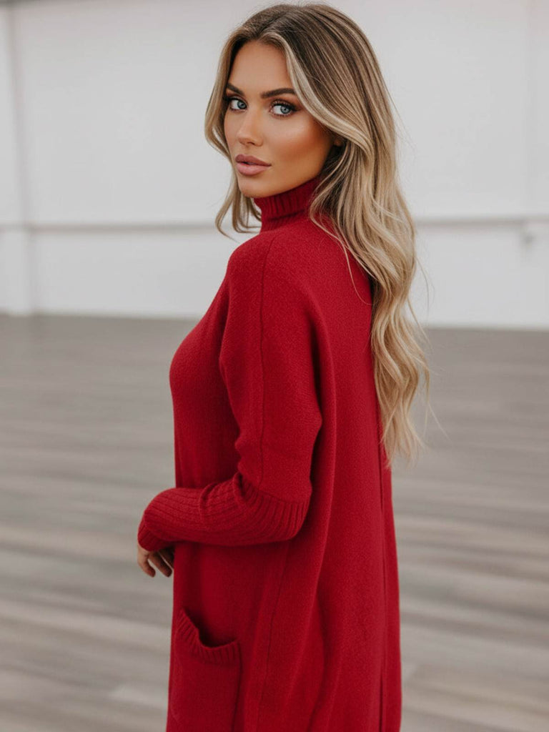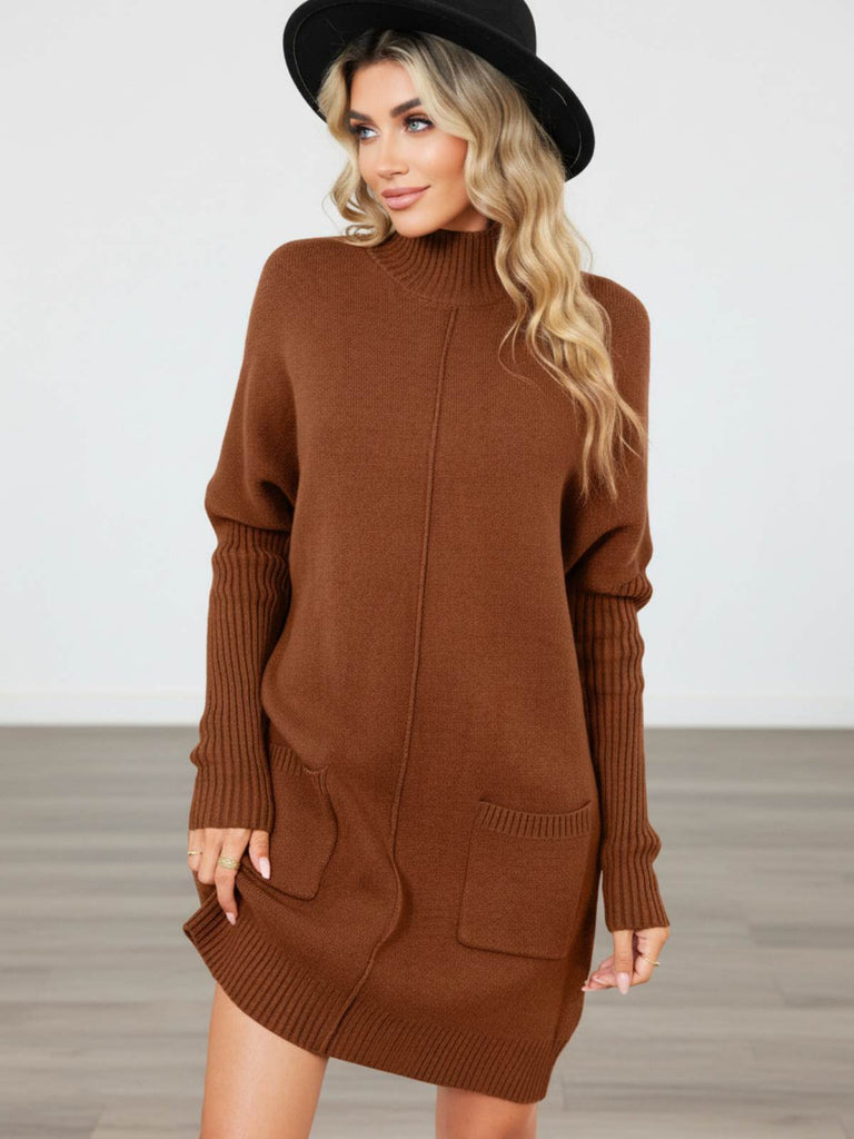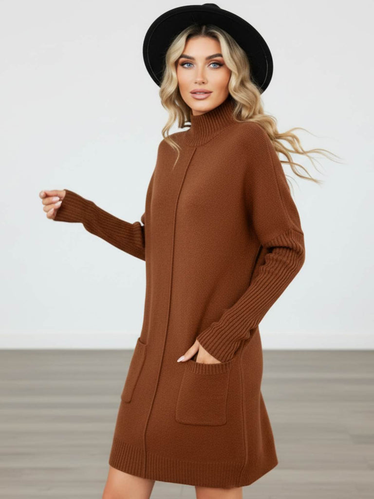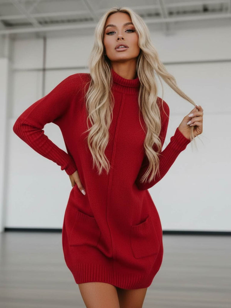 Warm, effortless, and endlessly wearable — the Crimson & Clay Sweater Dress is your go-to for cozy days that still call for style. Designed with a flattering high neckline, ribbed knit texture, functional front pockets, and a center seam that creates a streamlined silhouette, this shift dress blends boho charm with everyday ease.