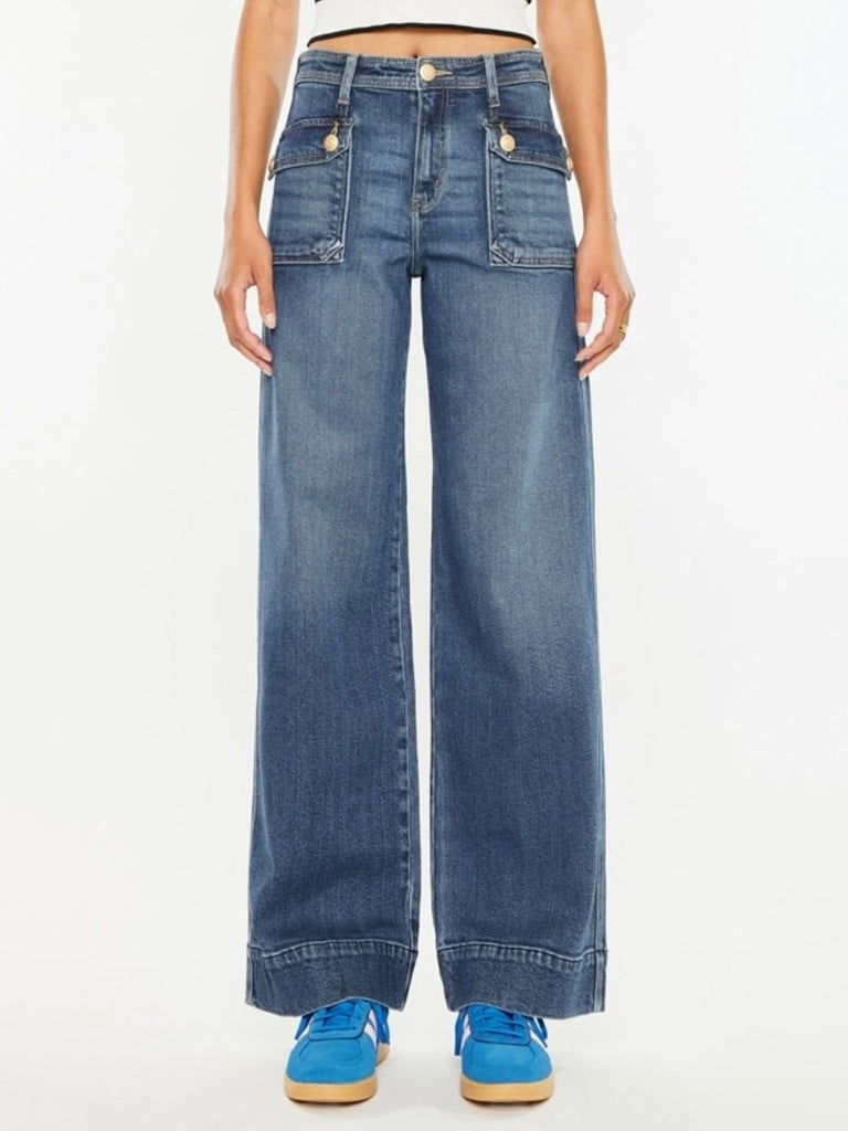 Cool, confident, and built to move—meet the Full Utility Wide Leg Jean, your new go-to for elevated everyday style. These high-rise wide leg jeans feature a rich dark wash with just the right amount of stretch for comfort that lasts all day.