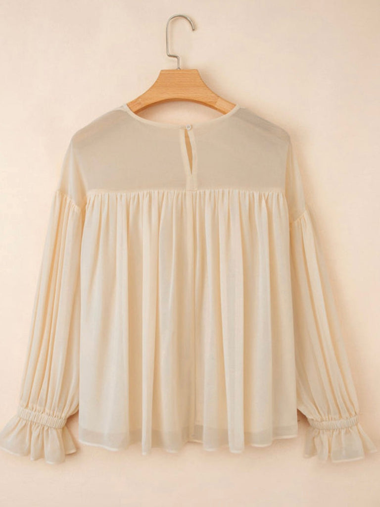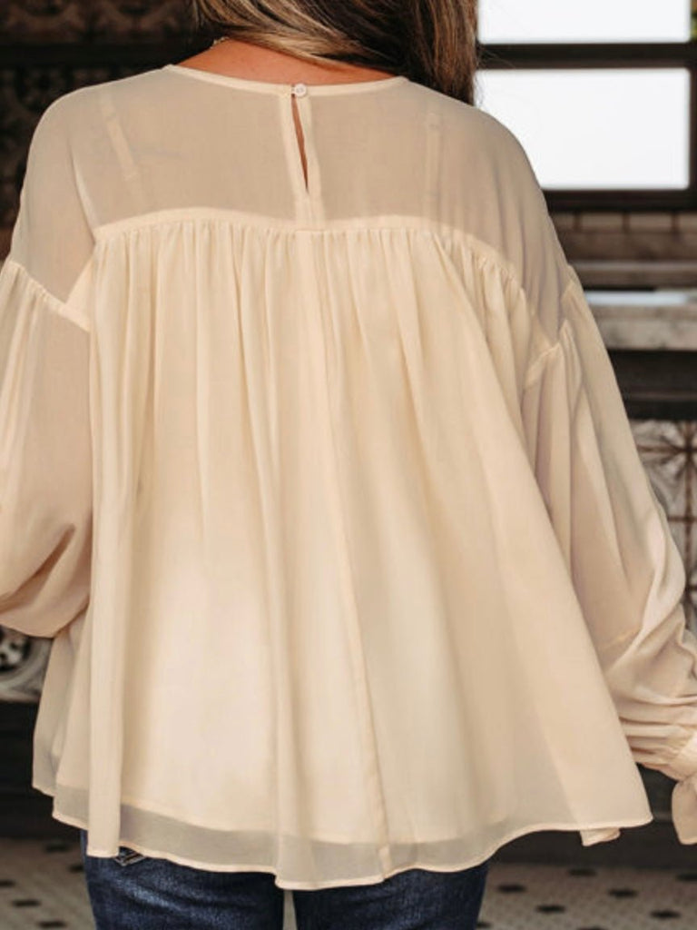 chiffon blouse women, cream sheer blouse, flowy boho top, neutral fall outfit, Oak and Pearl blouse