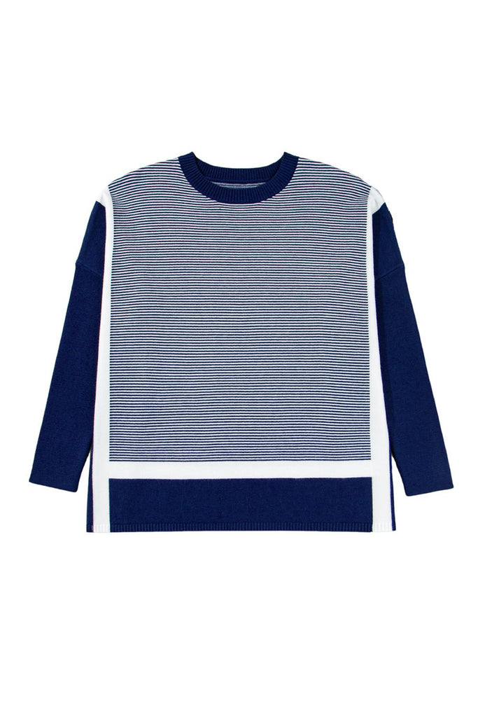 - Effortlessly stylish and comfortably oversized, this tunic sweater boasts a unique colorblock patchwork design.
