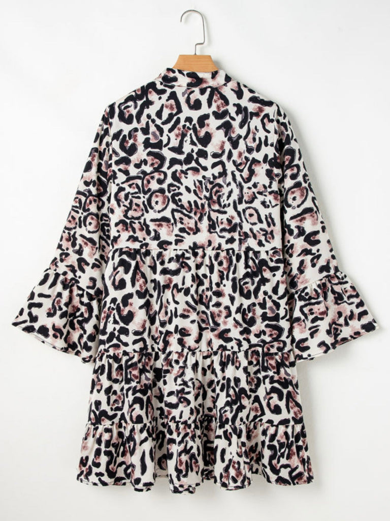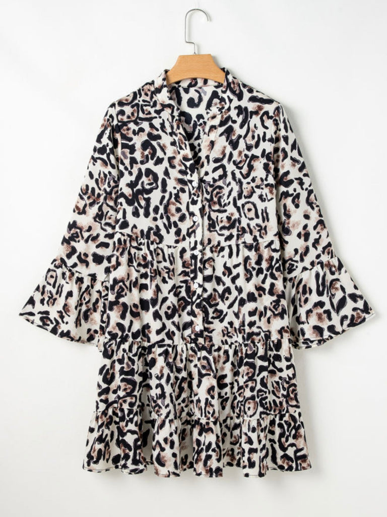 leopard tiered dress, animal print mini dress, boho fall dress, casual swing dress, Oak and Pearl dresses